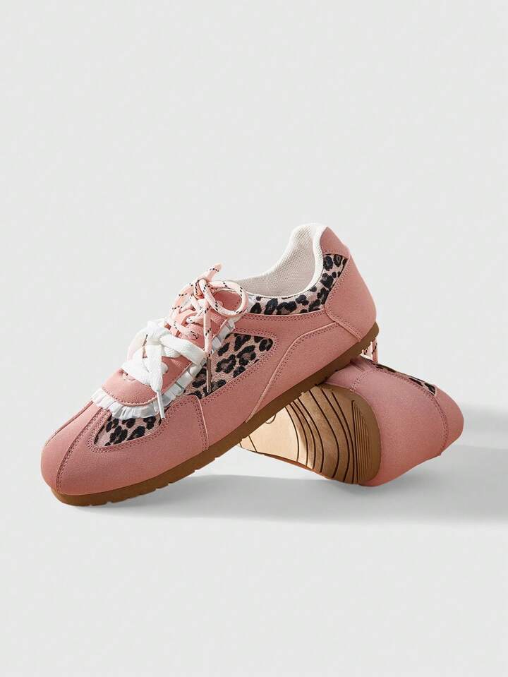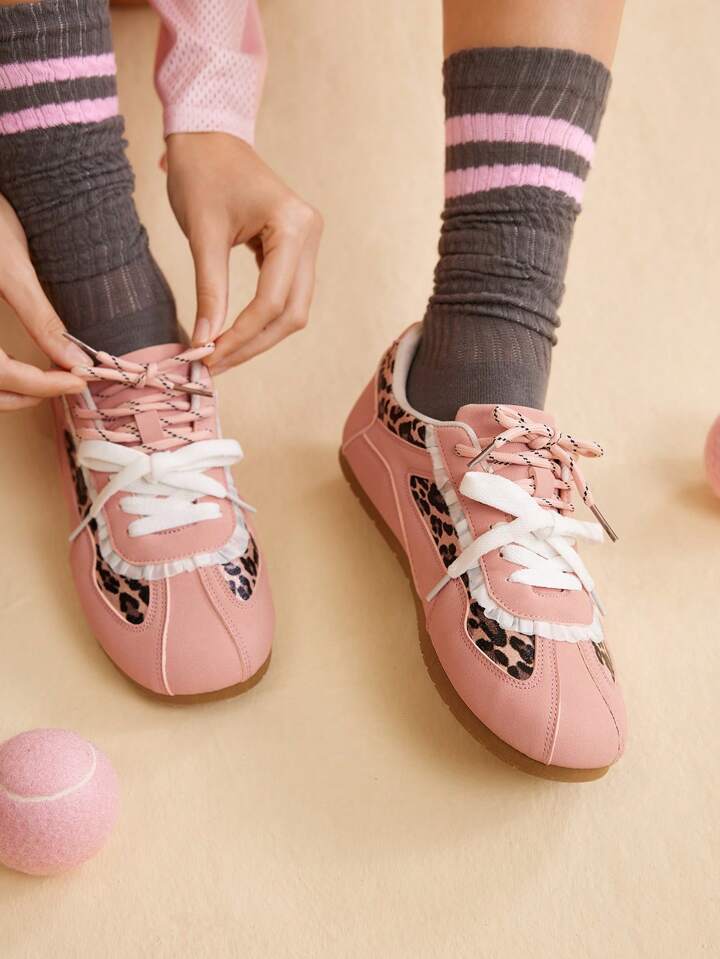 Kawaii Zapatillas con suela plana de estampado de leopardo vintage para mujer, nuevo calzado deportivo y casual versátil de estilo retro para skateboarding