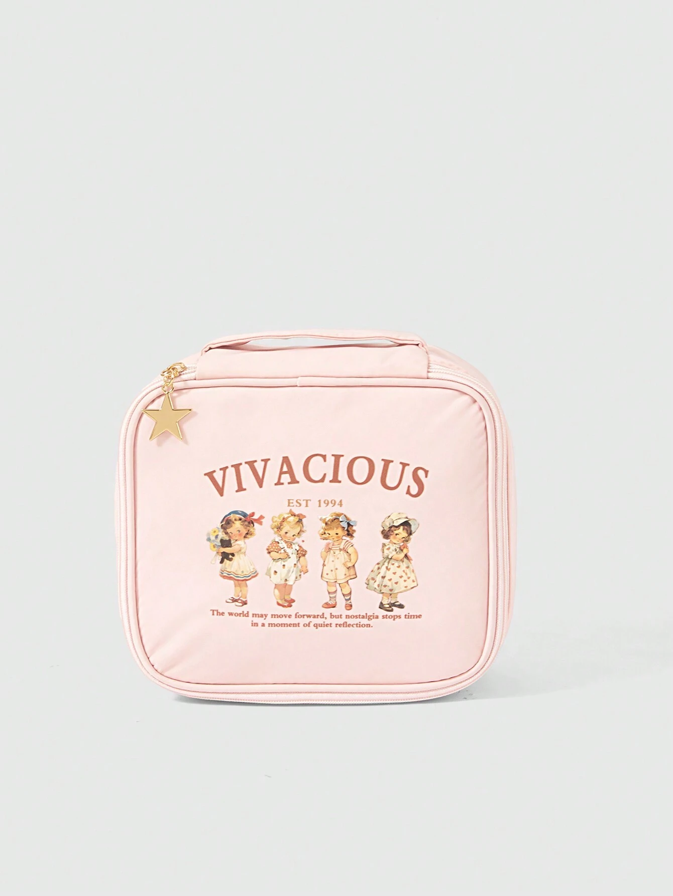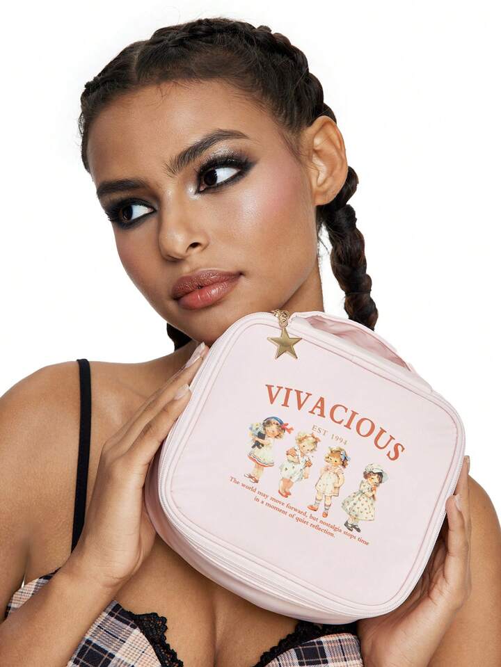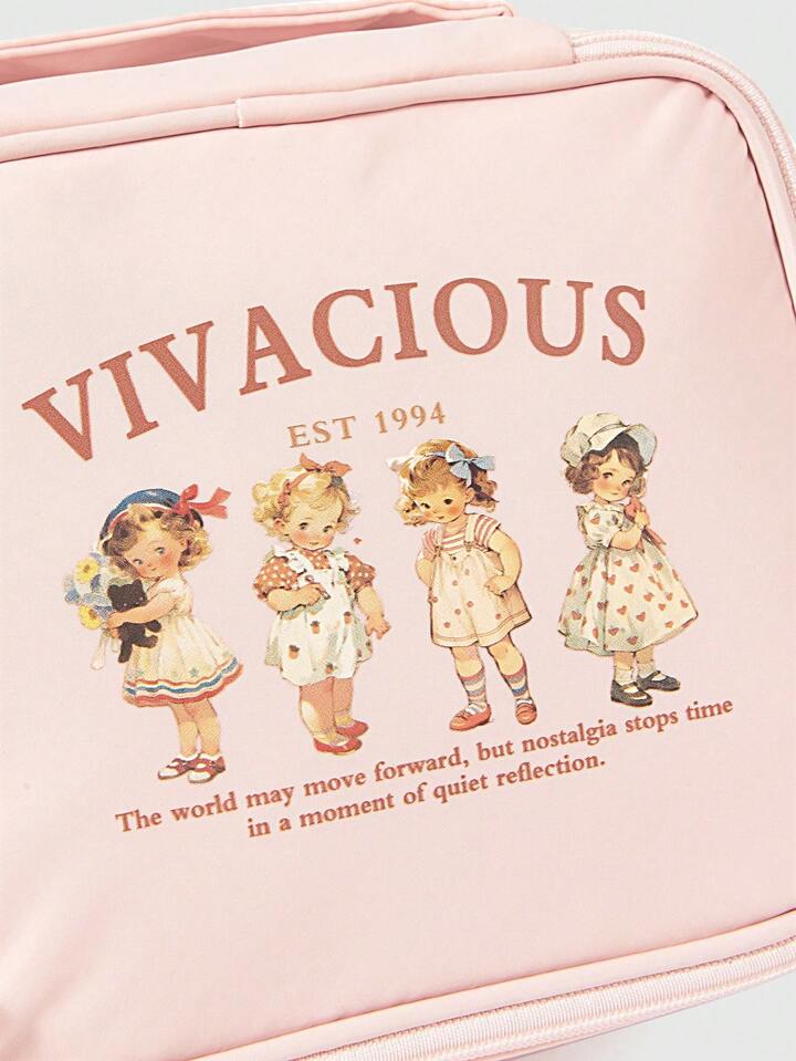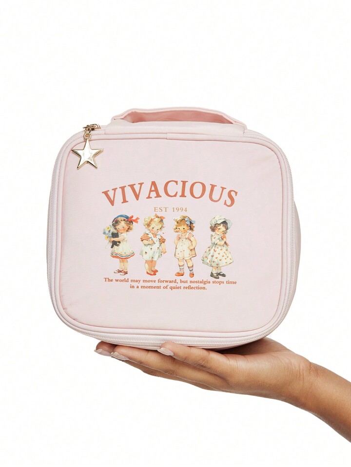 Kawaii Bolsa de maquillaje de gran capacidad con diseño de niña vintage 442464, hecha de tela Oxford impermeable, bolsa de aseo de viaje 3 en 1 portátil