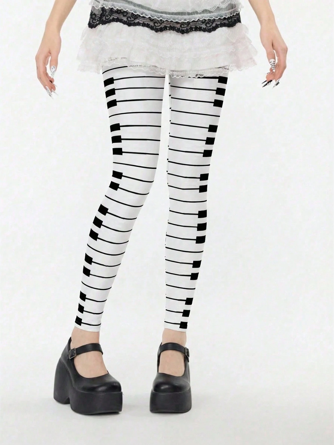 Kawaii Leggings ajustados vintage con estética de notas musicales Y2K, academia oscura y sexy para mujeres