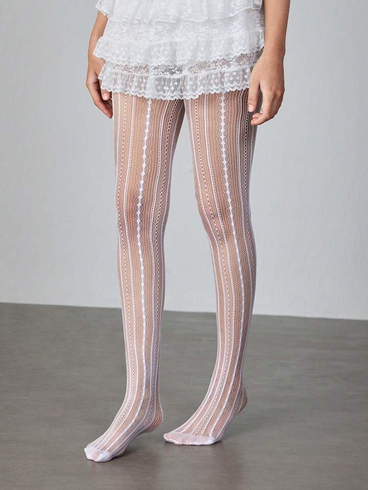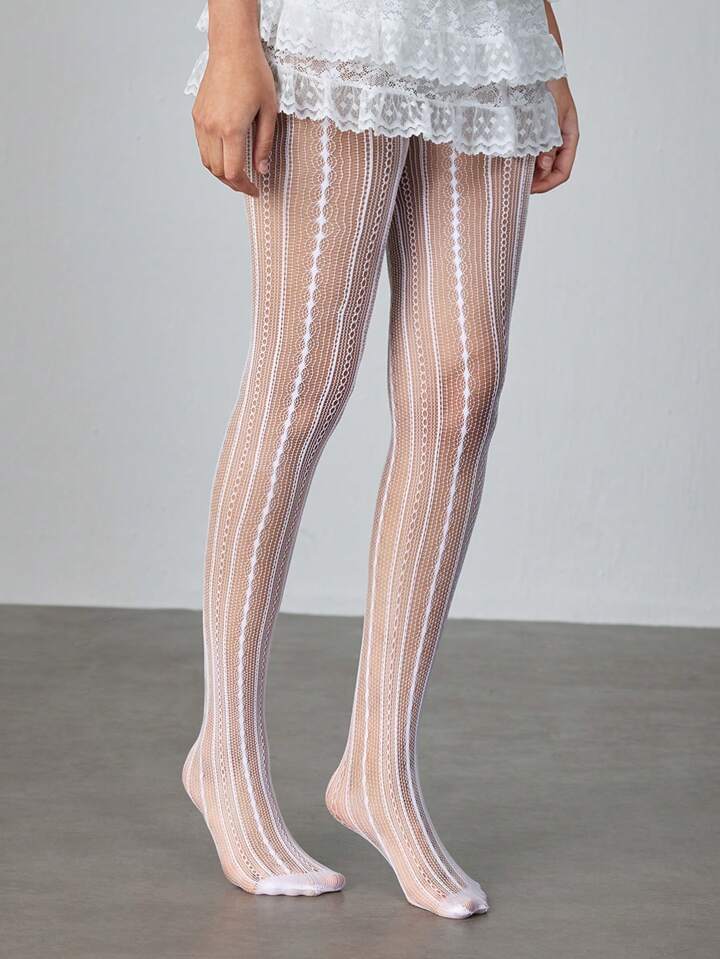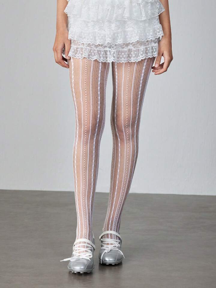 Kawaii Medias de red de malla hueca de estilo vintage, romántico y dulce con diamantes, estética japonesa agraciada