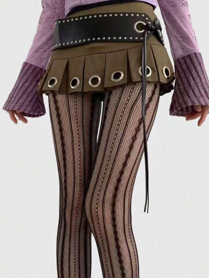 Kawaii Pantimedia elástica de red de pescar con diseño floral blanco