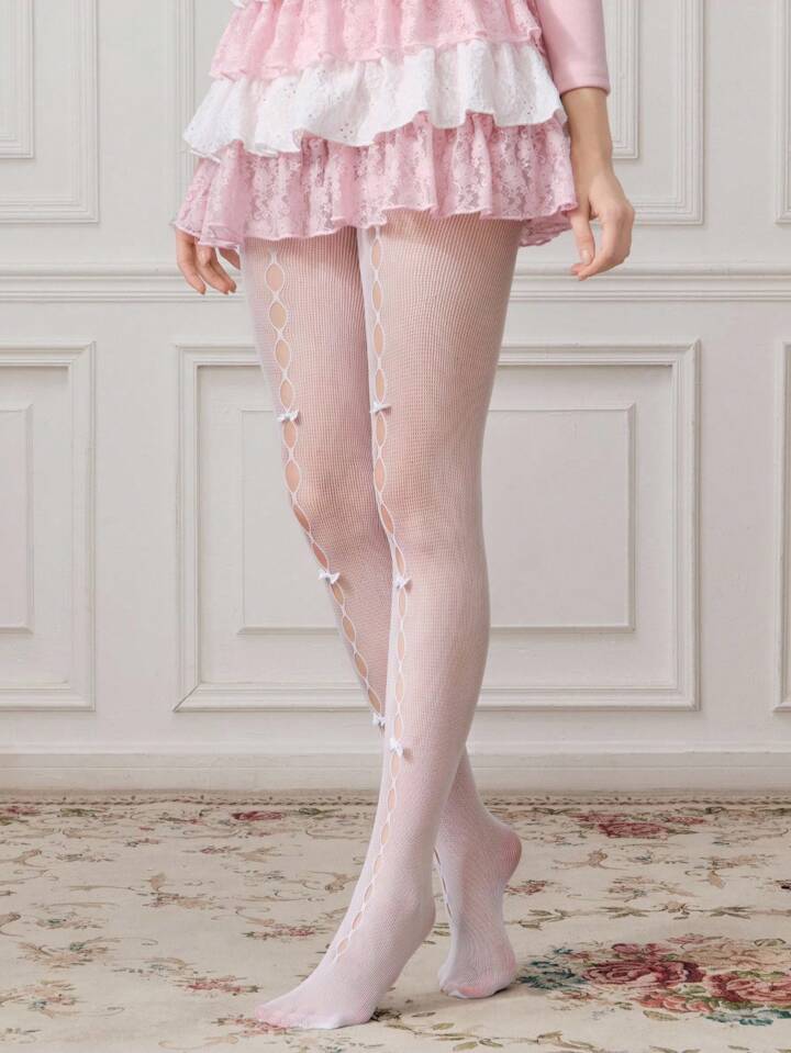 Kawaii Mallas/Pantimedias/Leggings blancos con lazo elástico adorable para mujer