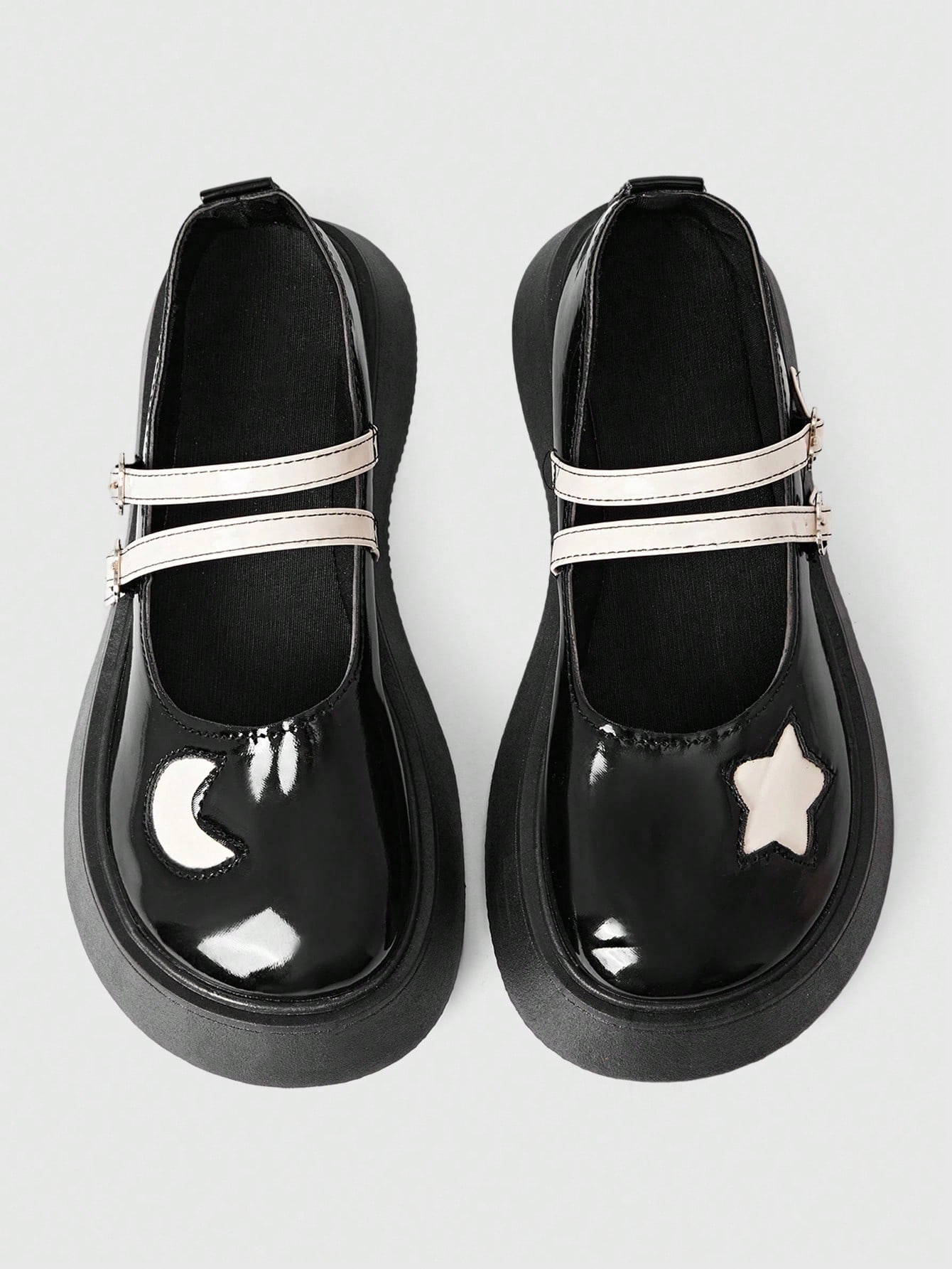 Kawaii Zapatos planos tipo mocasín con correa tipo Mary Jane en color blanco, adecuados para faldas, estudiantes adolescentes y mujeres, con plataforma y cuña