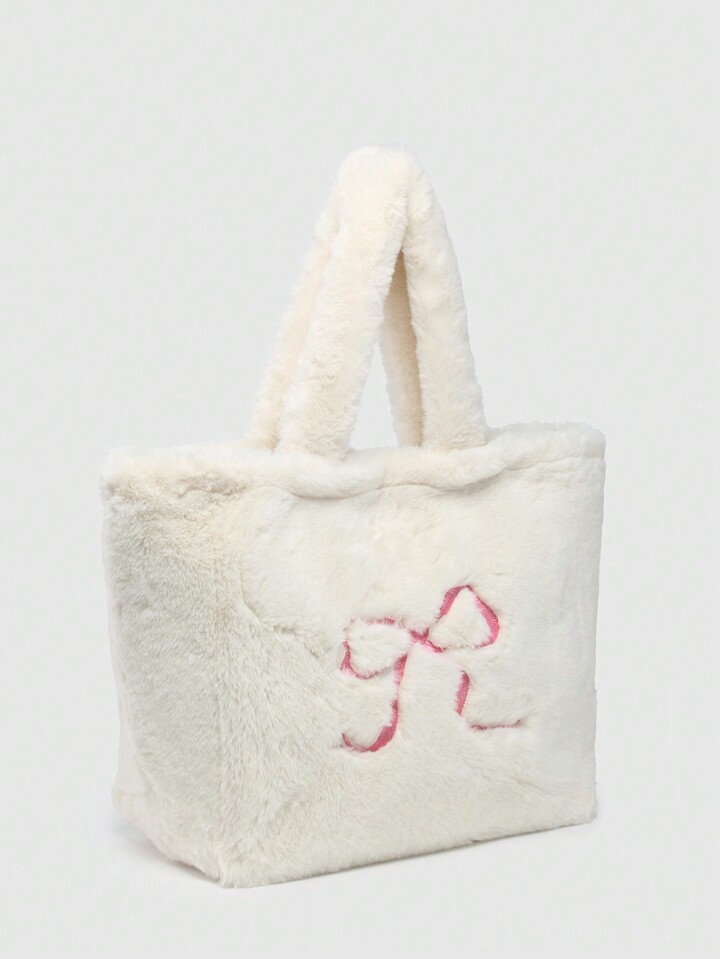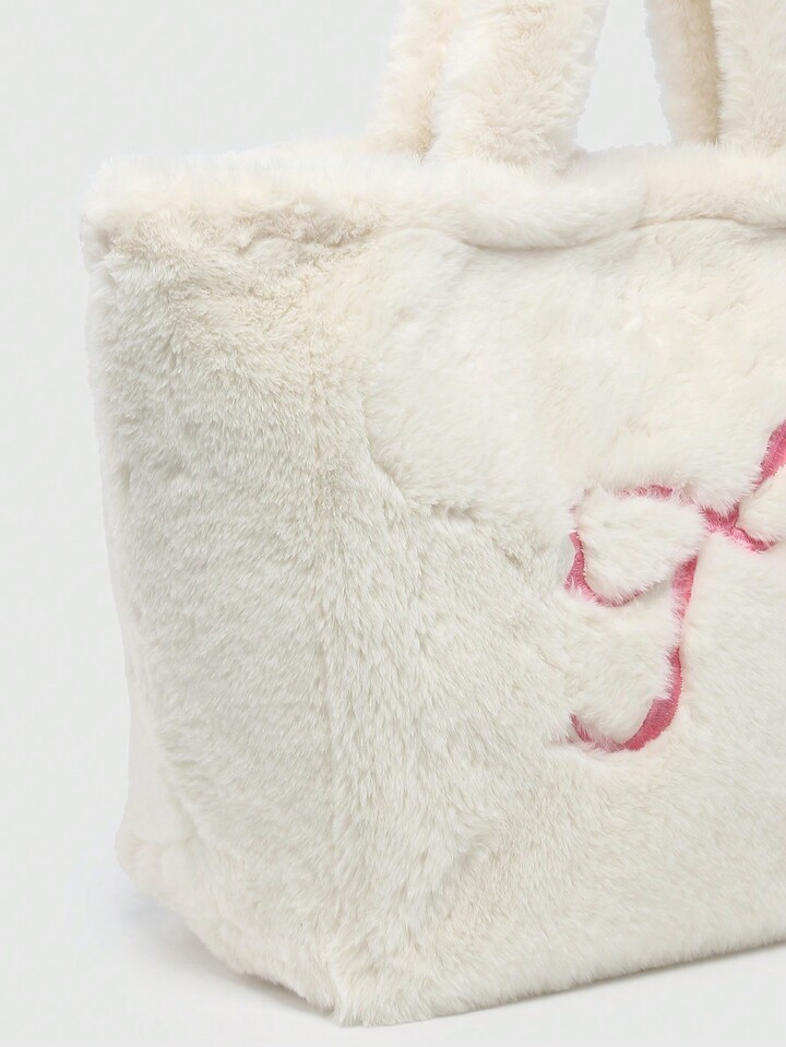 Kawaii Bolso de mano grande con lazo esponjoso y bordado para mujer, ideal como regalo de San Valentín
