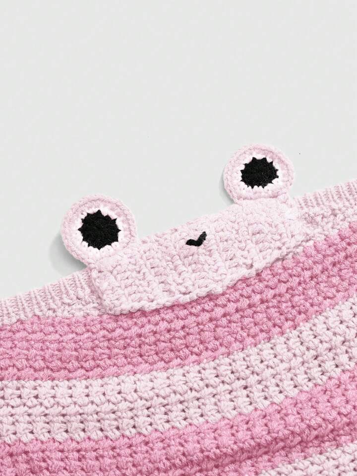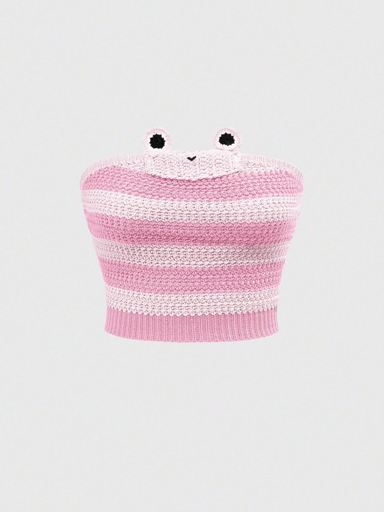 Kawaii Parte superior de tubo de punto 3D con rayas y rana para mujer