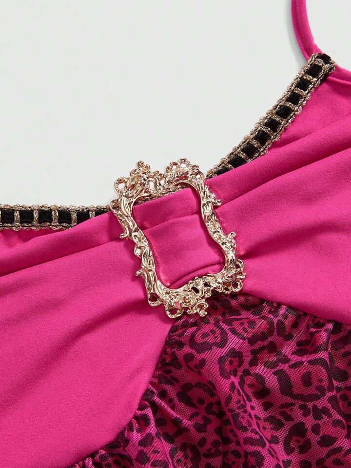Kawaii Camisola de tirantes finos con estampado de leopardo y parche de estilo Harajuku Y2K con hebilla metálica en forma de sol para mujer