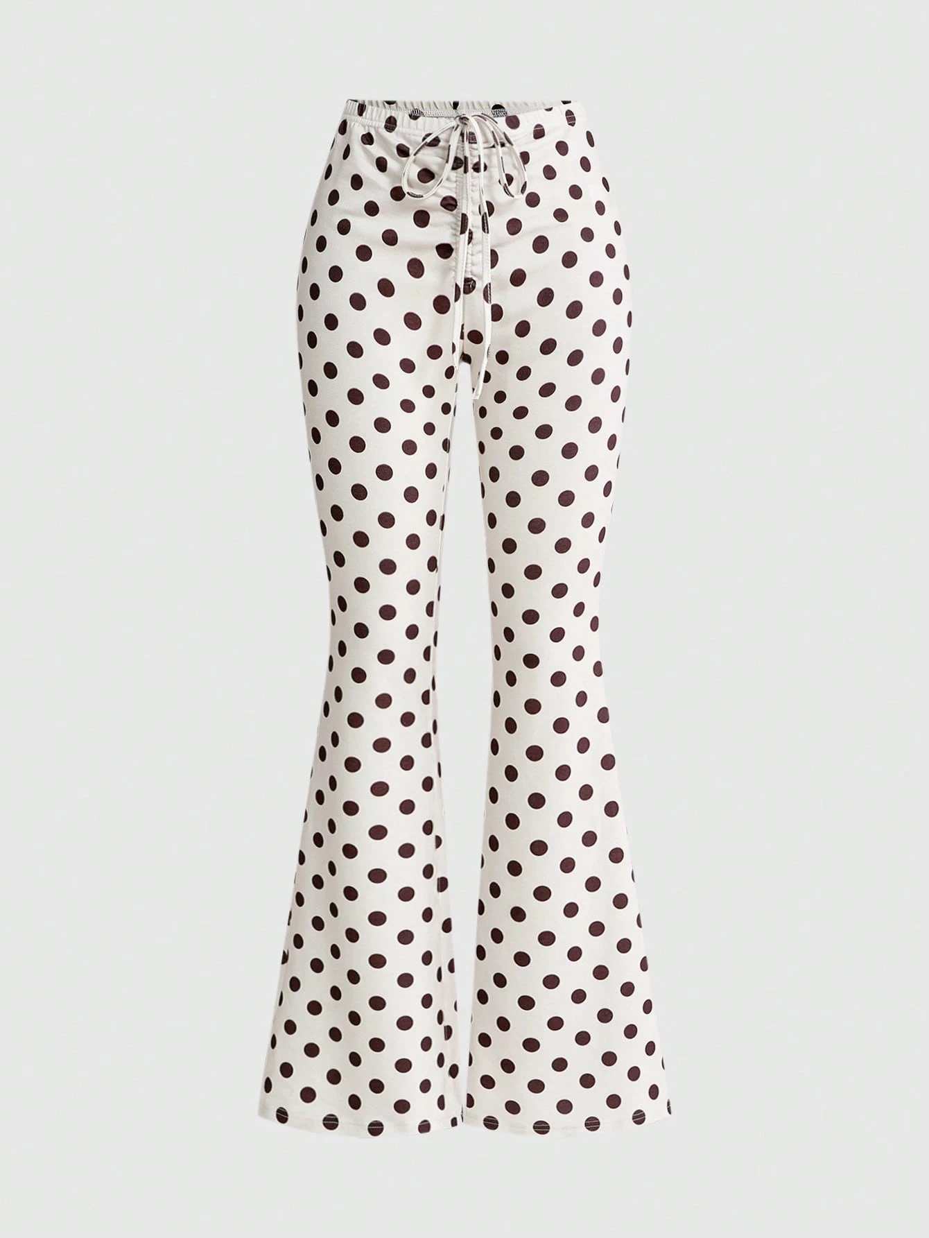 Kawaii Pantalones acampanados de cintura súper baja versátiles con cordón y estampado de lunares para mujer