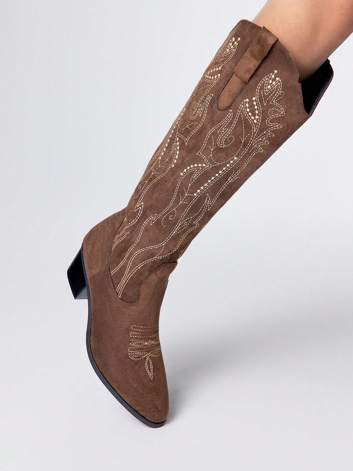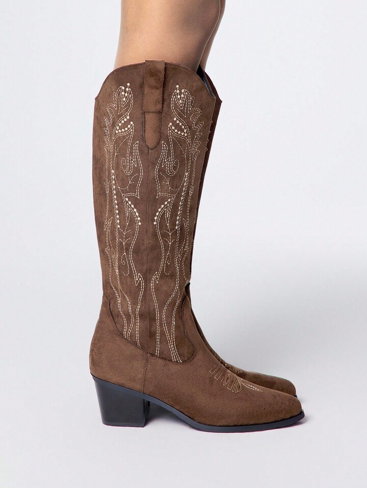 Kawaii Botas occidentales de mujer con diseño hueco de alas de mariposa bordadas en marrón, nuevas botas de piel por encima de la rodilla para primavera/otoño