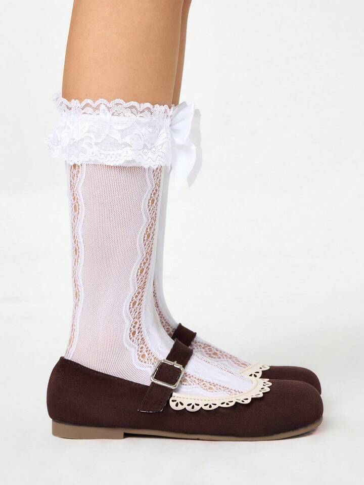 Kawaii Mocasines marrones para mujer, zapatos Mary Jane de punta cerrada, bailarinas Lolita con lazo y encaje