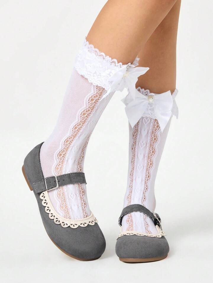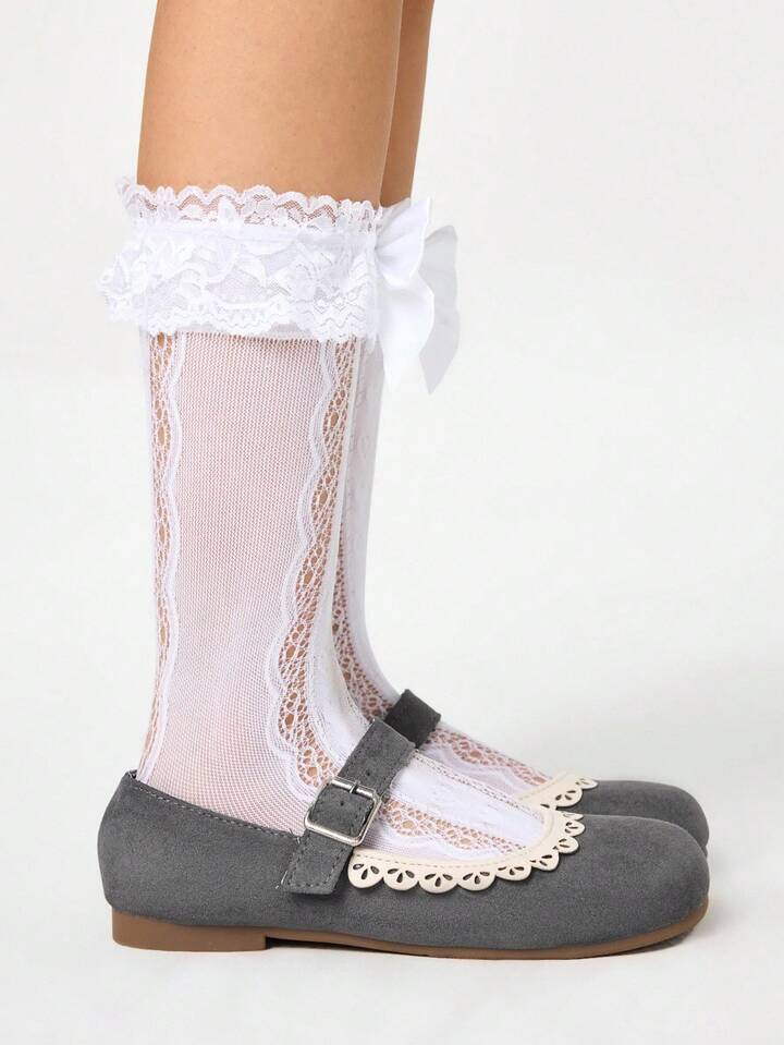 Kawaii Mocasines marrones para mujer, zapatos Mary Jane de punta cerrada, bailarinas Lolita con lazo y encaje