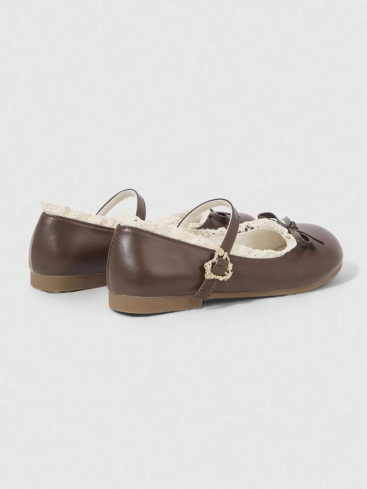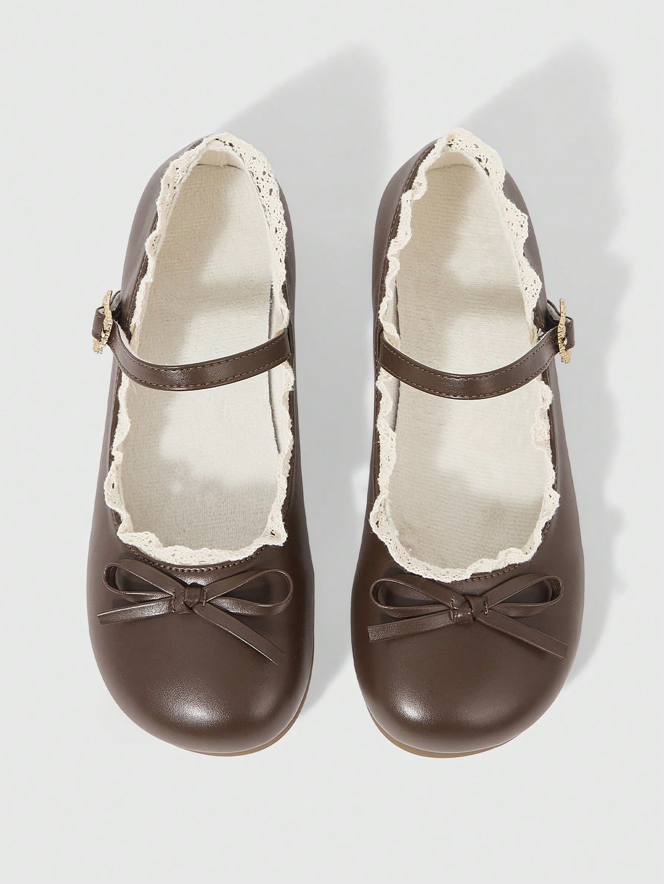 Kawaii Mocasines marrones para mujer, zapatos Mary Jane de punta cerrada, bailarinas planas con lazo estilo Lolita