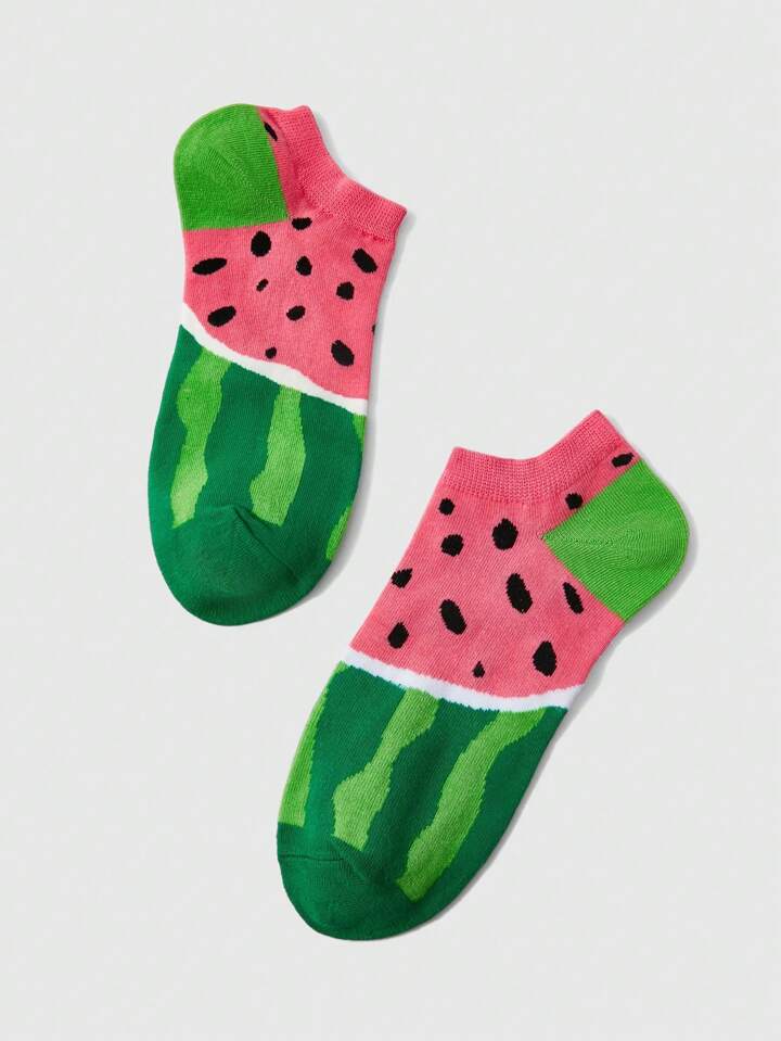 Kawaii Calcetines de tobillo casuales y divertidos con estampado de sandía para mujer