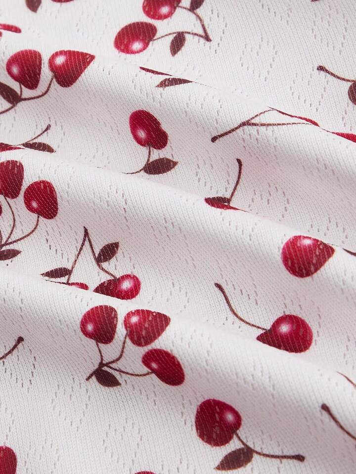 Kawaii Camiseta informal para mujer con cuello cuadrado y gráfico de cereza y lazo