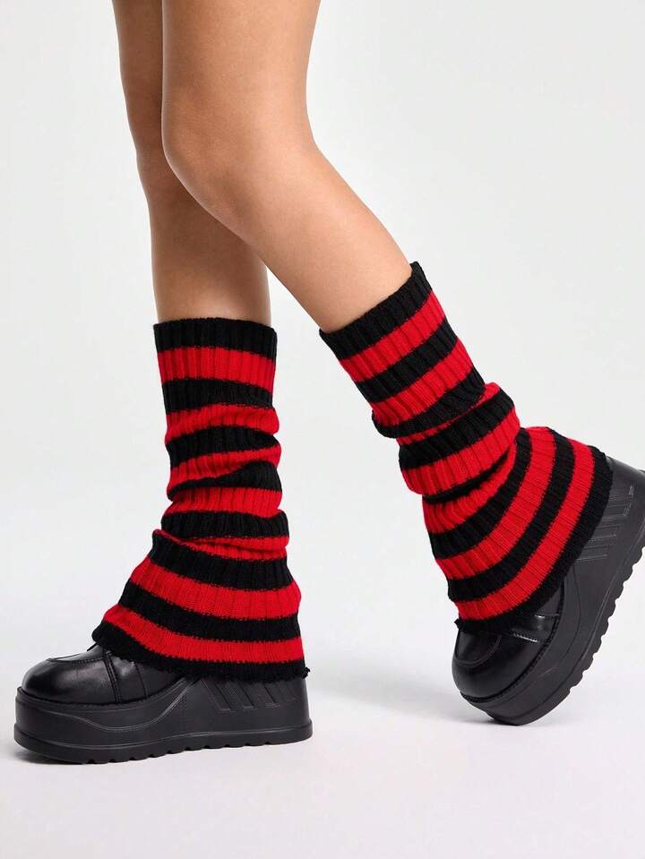 Kawaii Calentadores de piernas negros versátiles y casuales para mujer, otoño/invierno