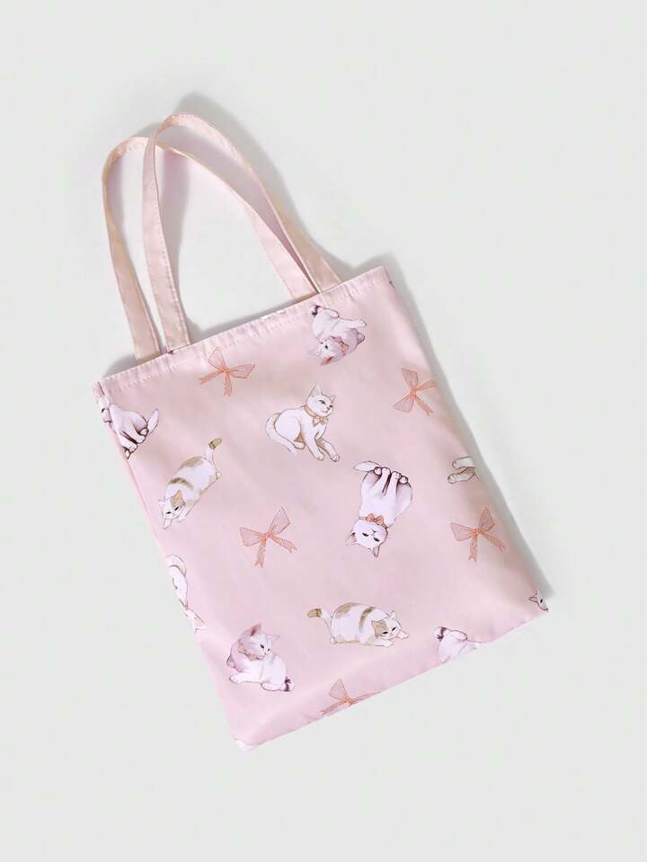 Kawaii Bolso Grande Para Mujer Con Patrón De Gato Y Lazo