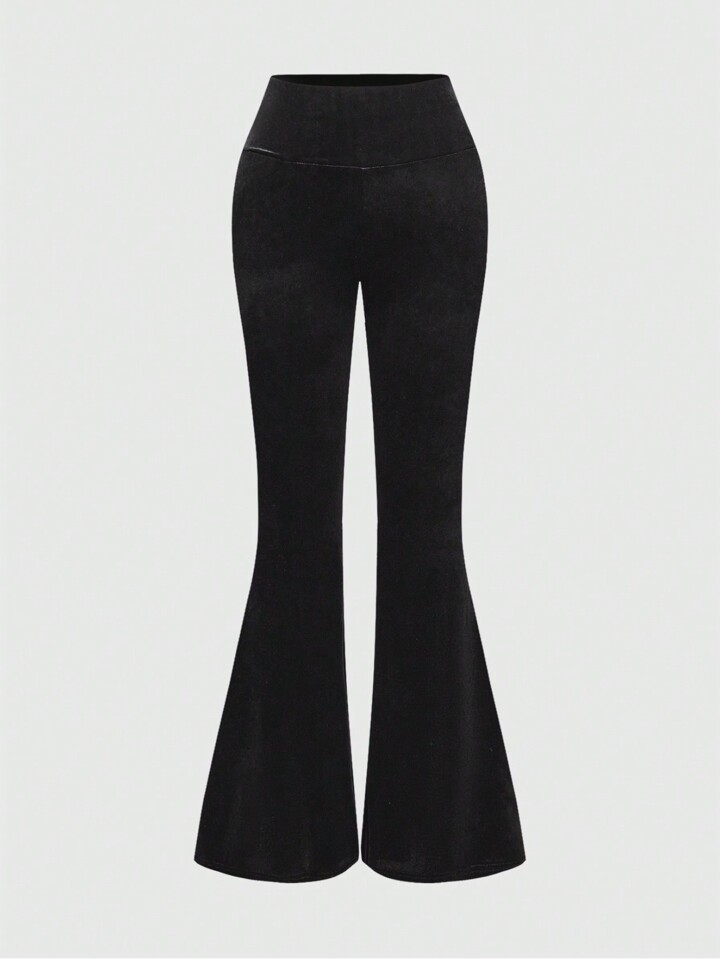 Kawaii Pantalones de terciopelo con bloque de color y decoración bordada de lazo, tema de Halloween para mujer