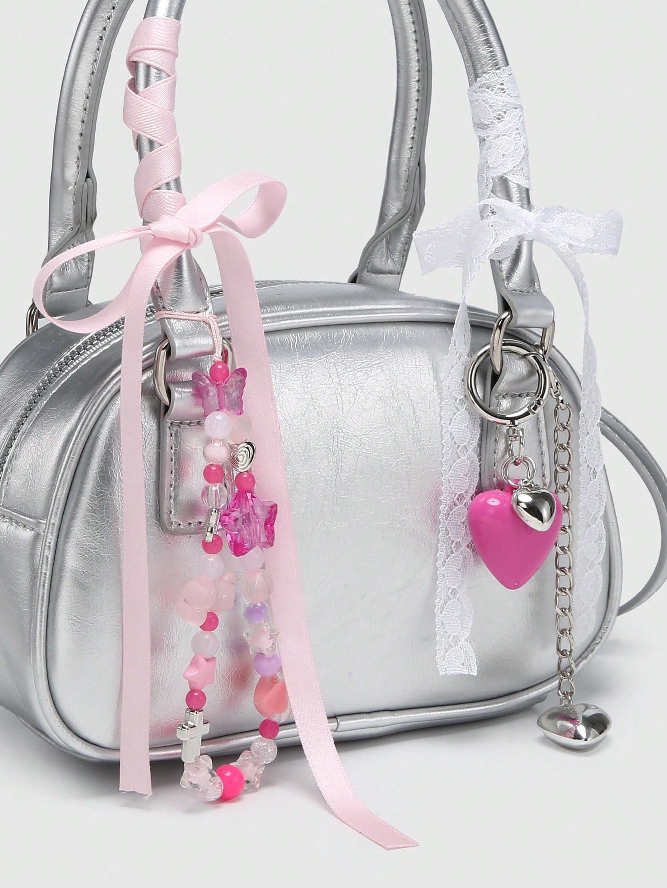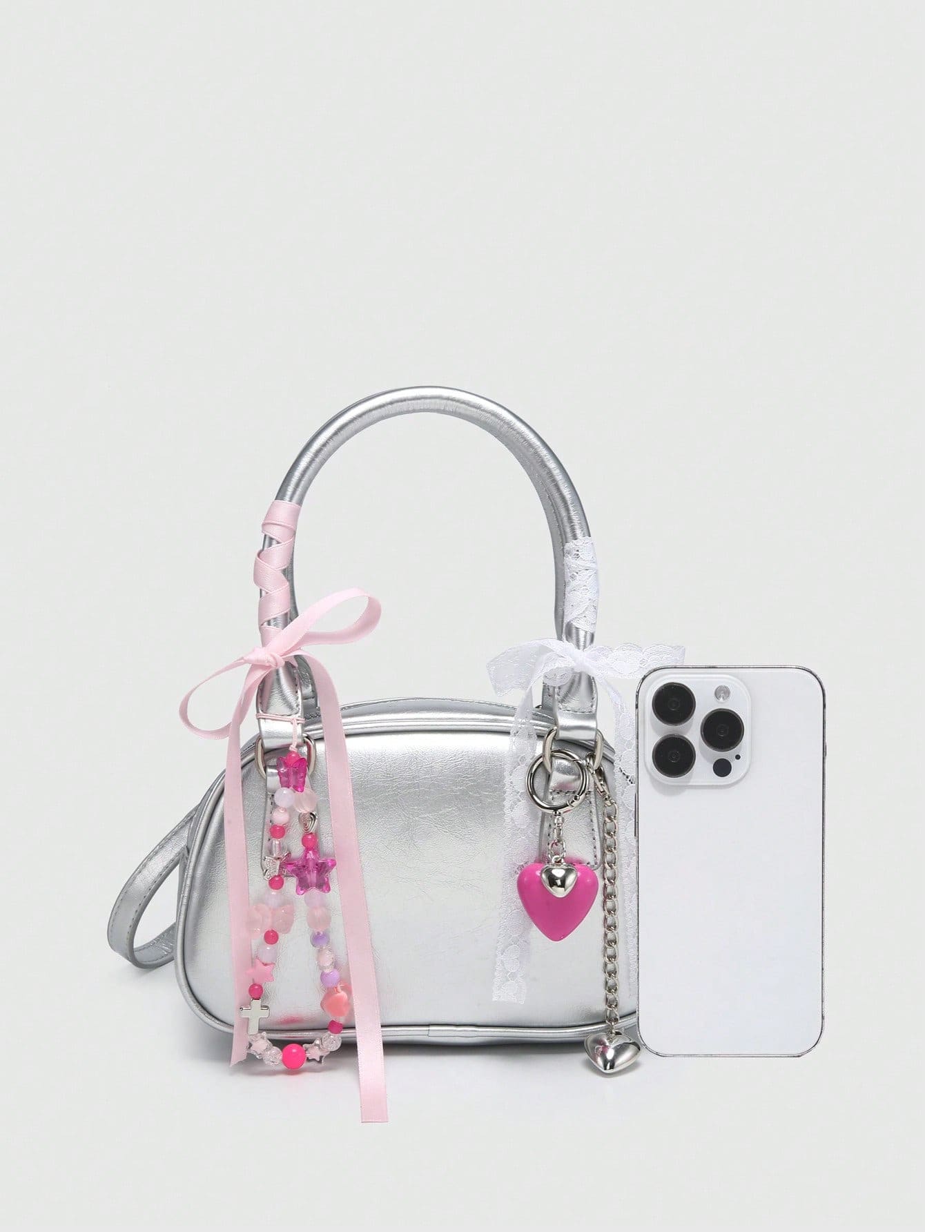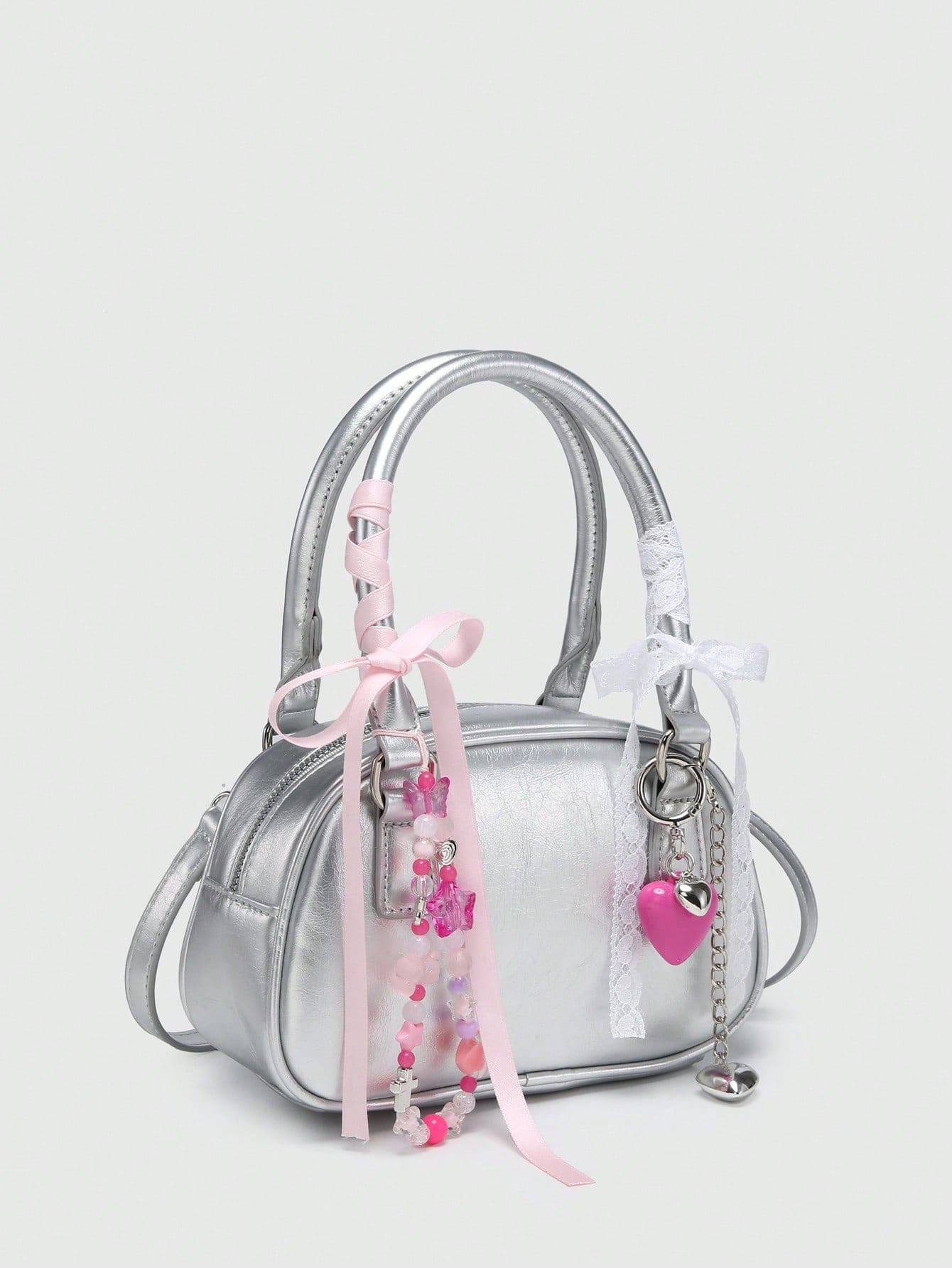 Kawaii Bolso de mano mini con estilo de ballet, decorado con perlas de cereza y moño, bolso de moda color borgoña, bolso con moño de moda para mujer, bolso rojo