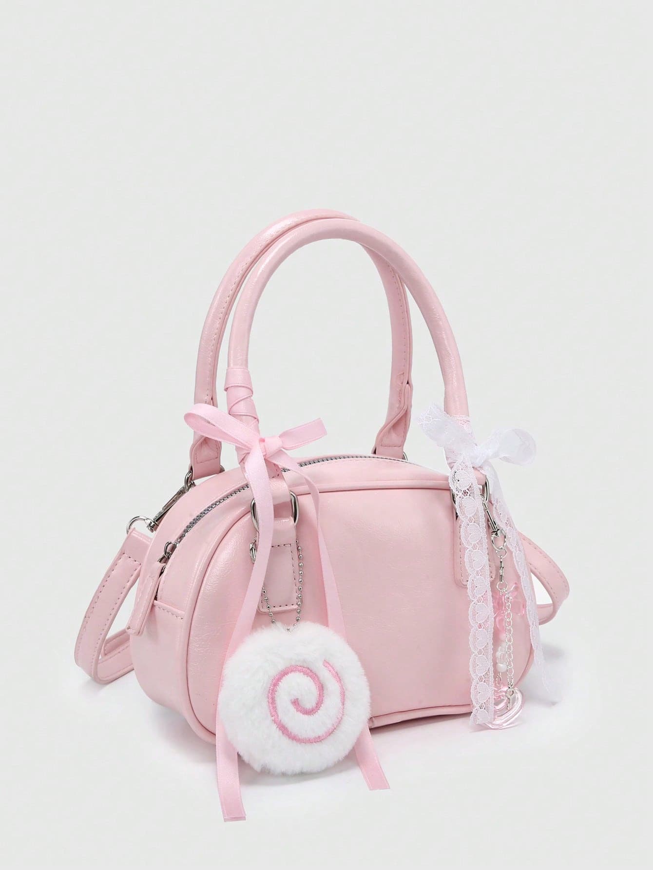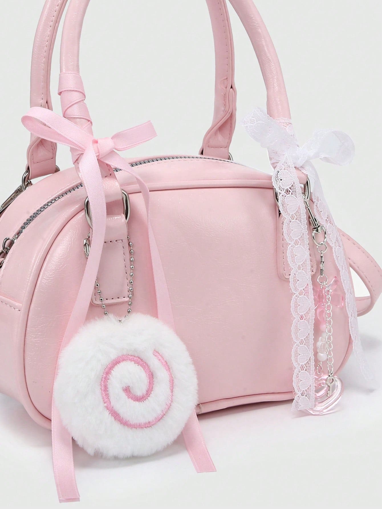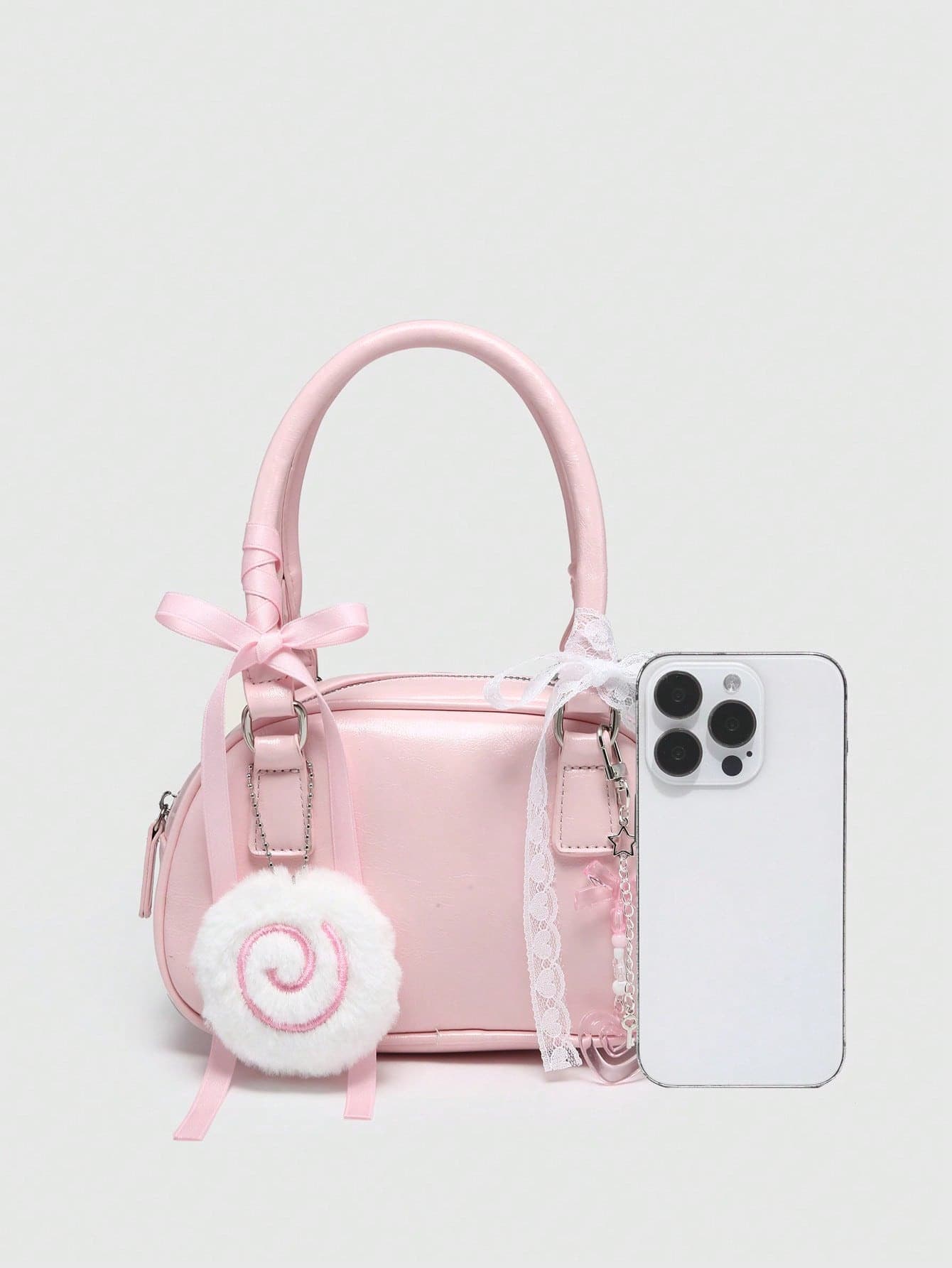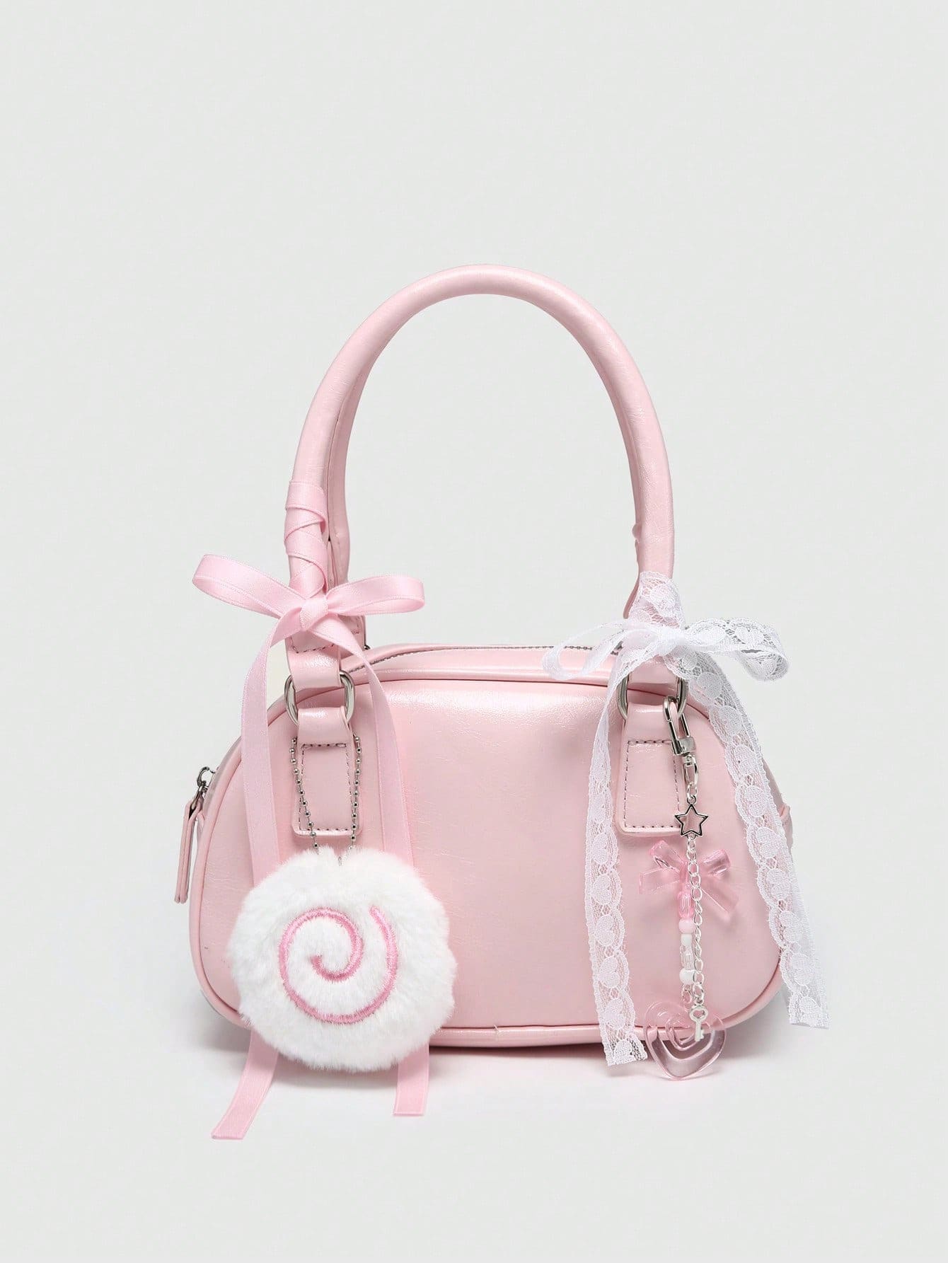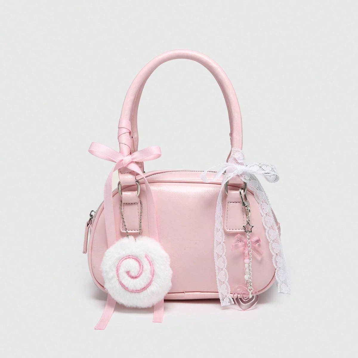 Kawaii Bolso de mano mini con estilo de ballet, decorado con perlas de cereza y moño, bolso de moda color borgoña, bolso con moño de moda para mujer