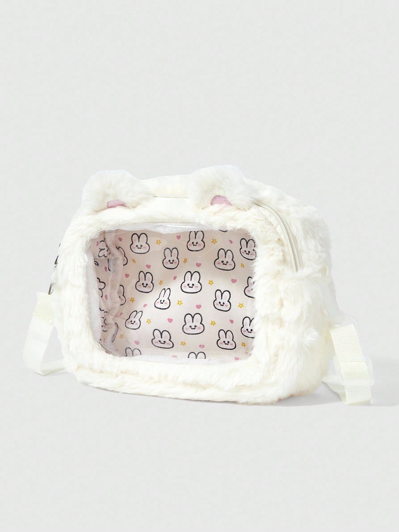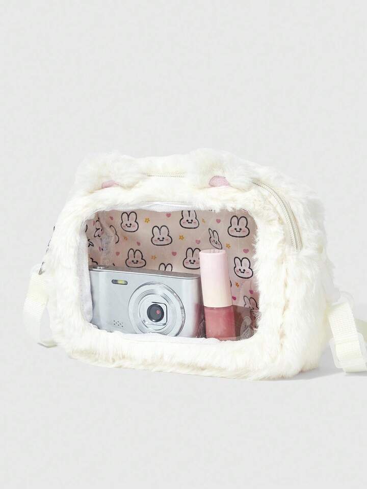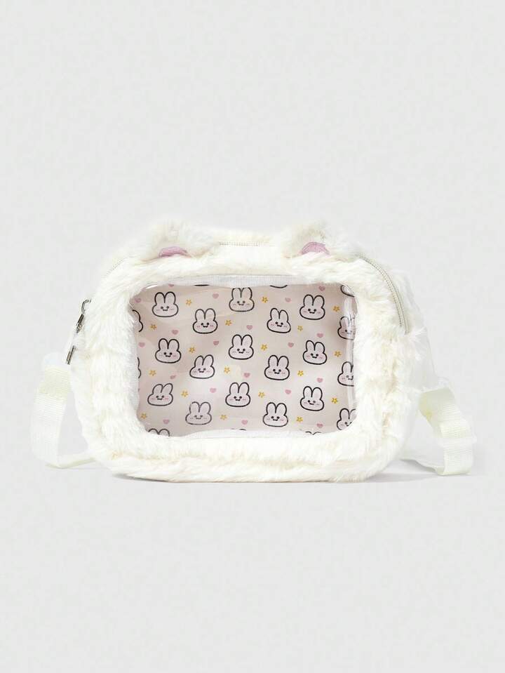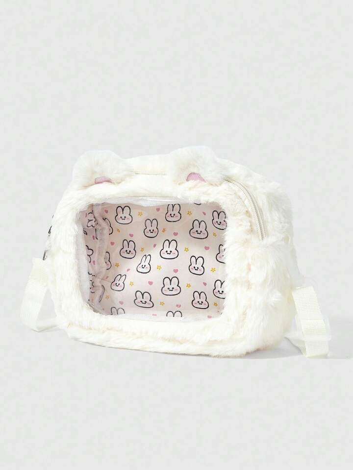 Kawaii Bolso de mujer versátil de moda con hombro y bandolera, con bordado y estampado de conejo de peluche