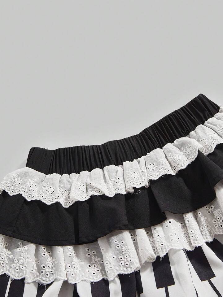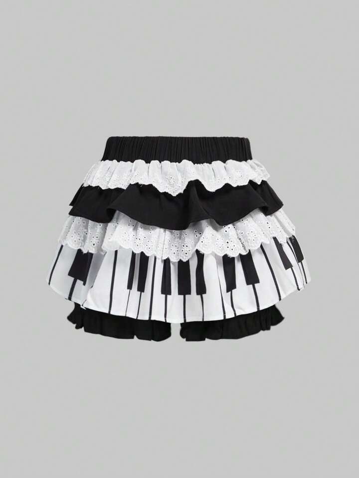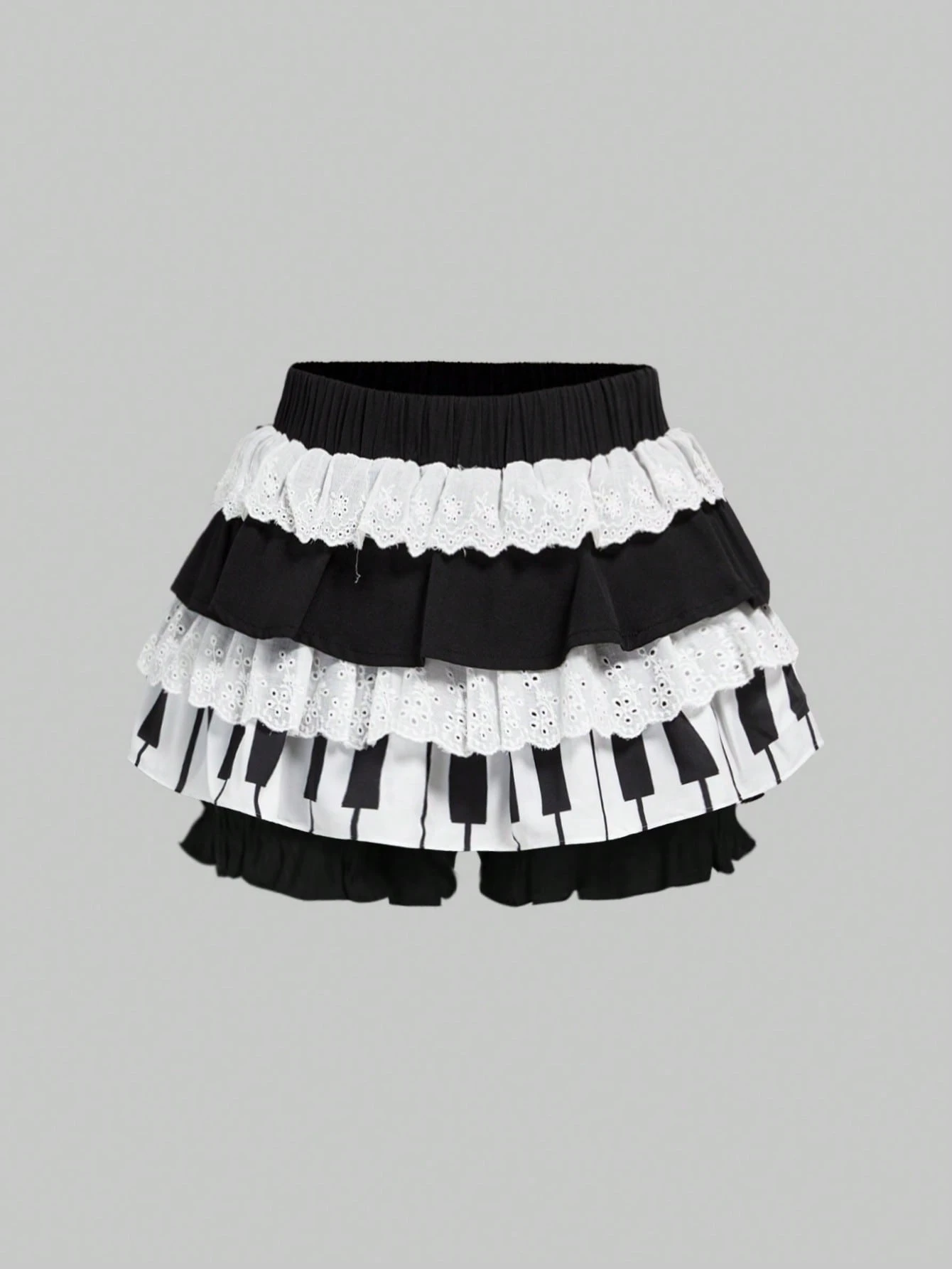 Kawaii Pantalones falda peplum con estampado de teclado de piano lindo y dulce para mujer