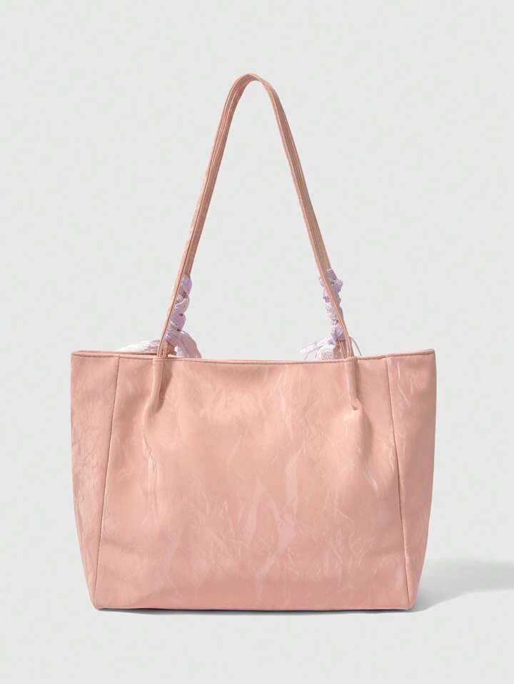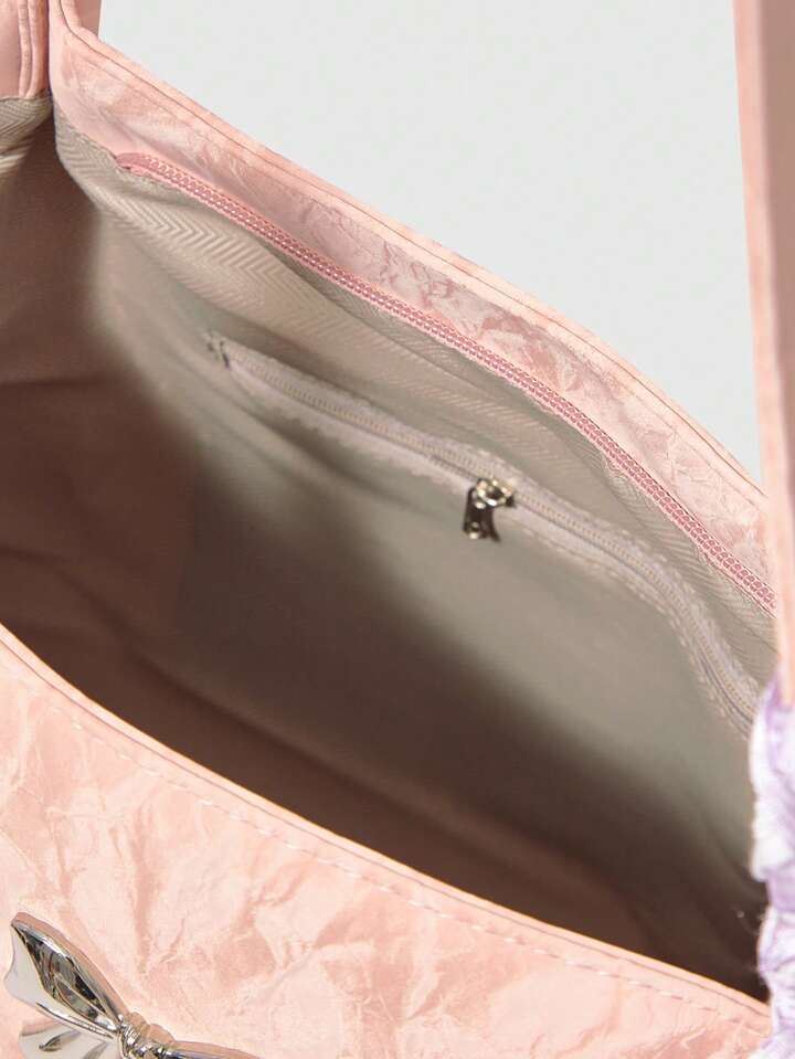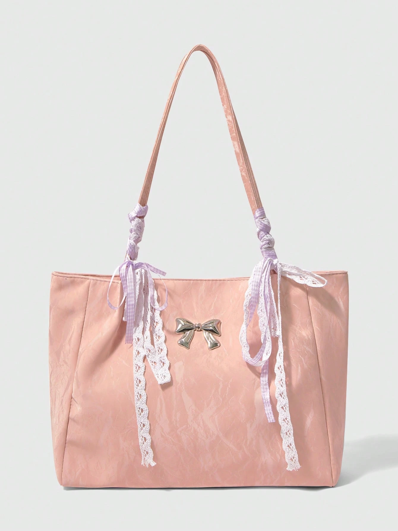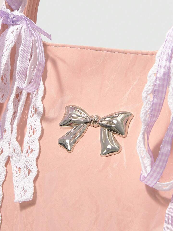 Kawaii Bolso de hombro de gran capacidad con lazo decorativo para uso diario de moda para mujer