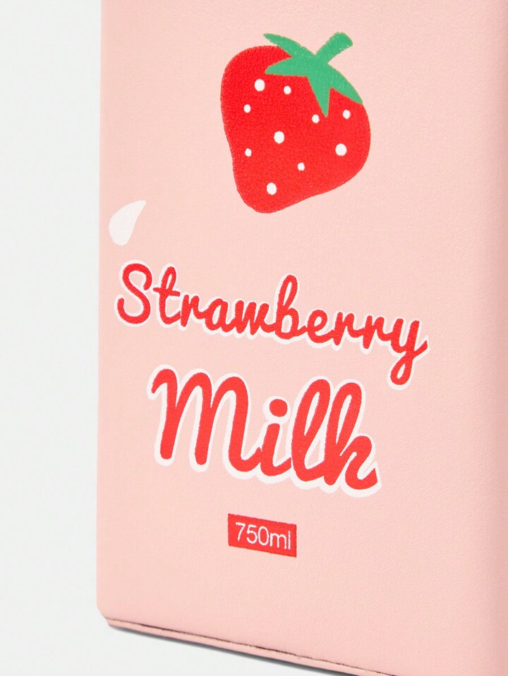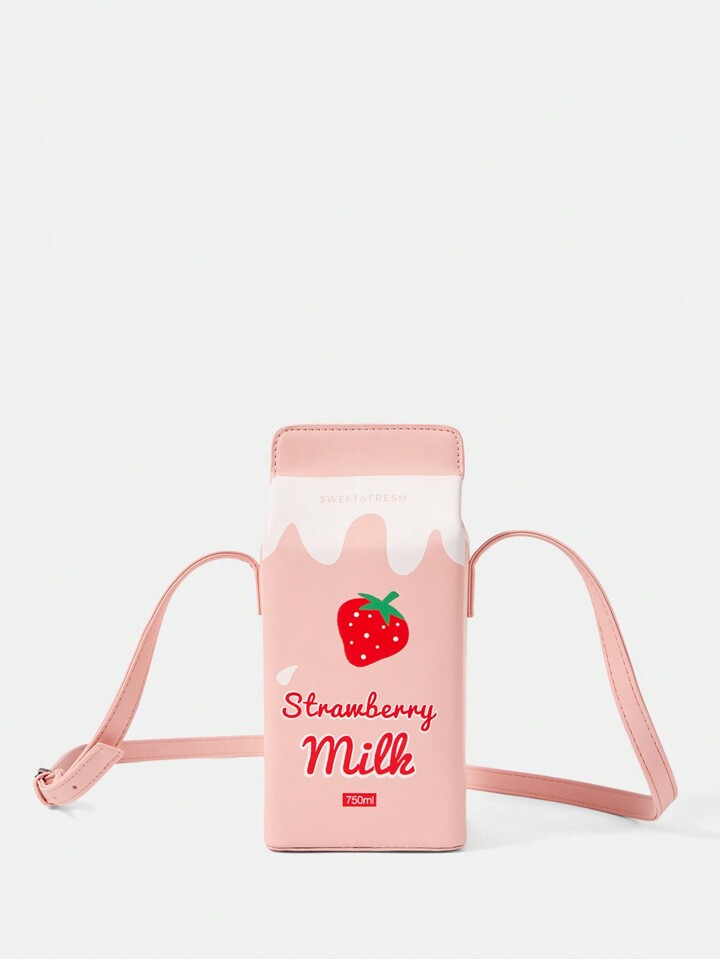 Kawaii Bolso cruzado de hombro en forma de cartón de leche de fresa para mujer, ideal para el Día de San Valentín