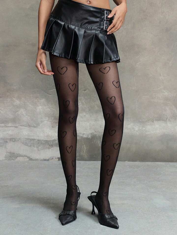 Kawaii Medias/Pantimedias/Leggings con estampado de corazones para mujer, aptos para combinar con faldas cortas