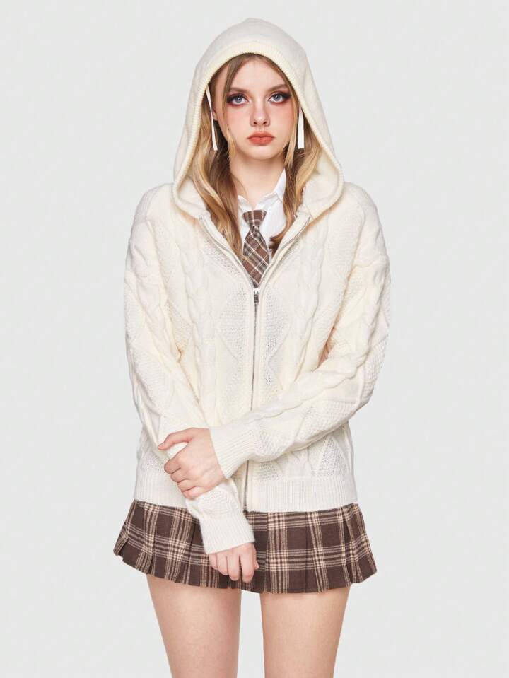 Kawaii Suéter De Manga Larga Con Capucha Y Cremallera Para Mujer