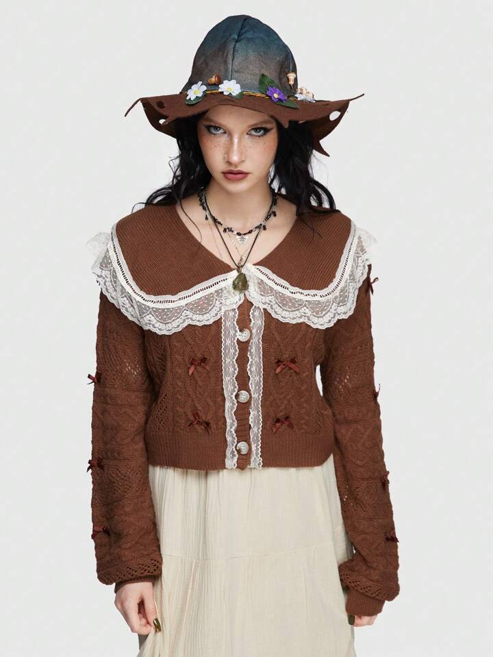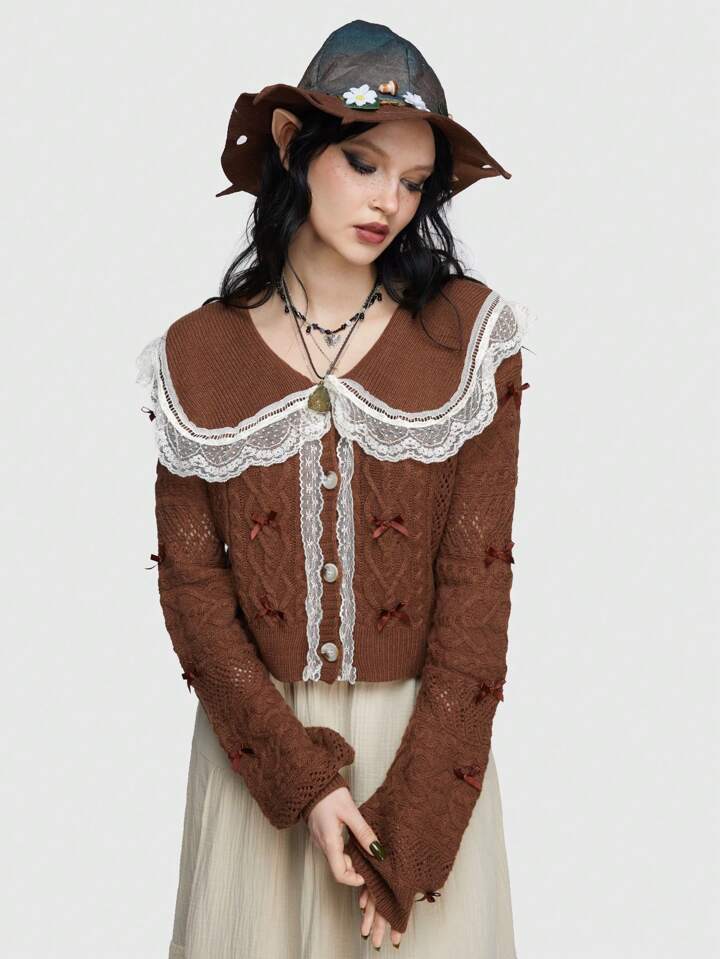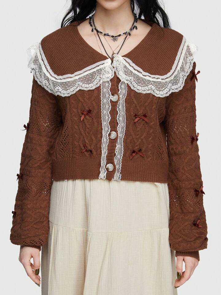 Kawaii Cárdigan Con Encaje Para Mujer Con Parches Y Decoración De Lazo