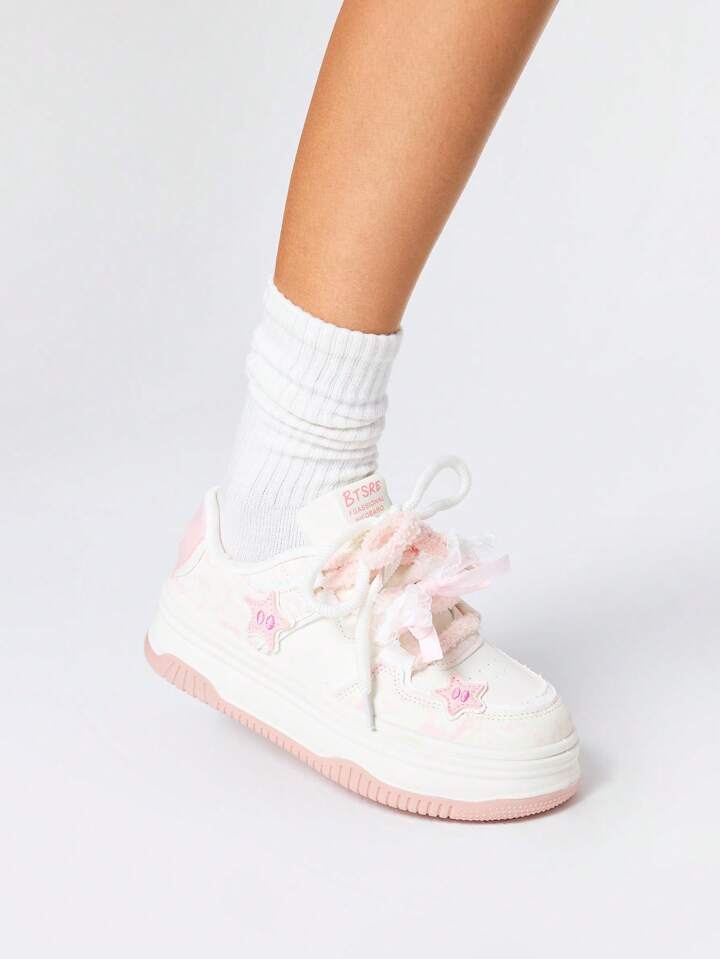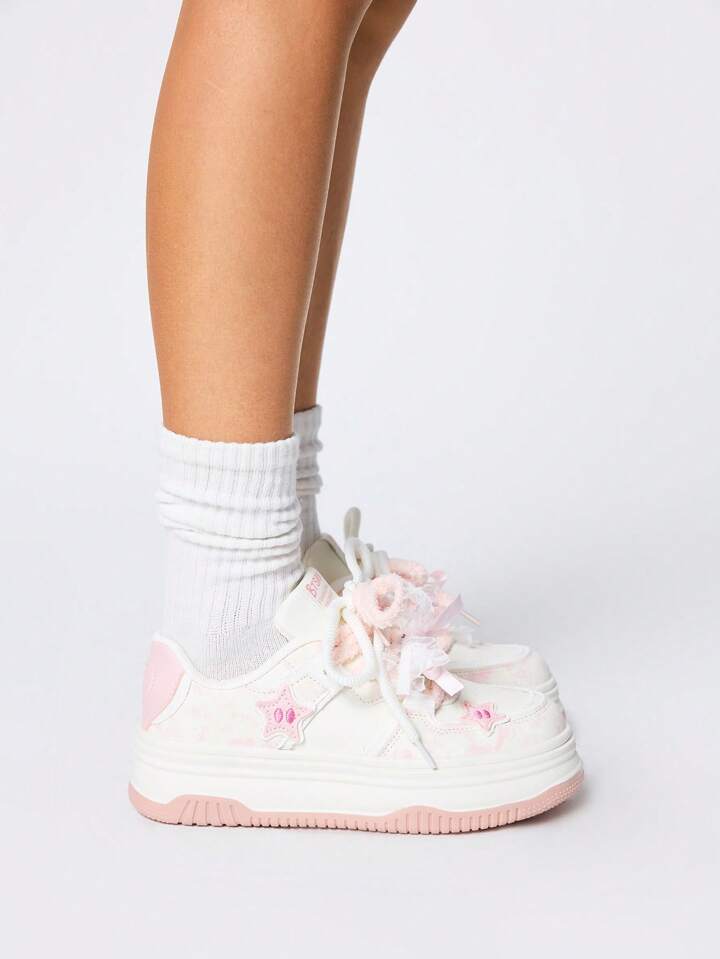 Kawaii Zapatillas de deporte tipo Lolita con cordones para mujer, con suela blanda y informal, zapatos deportivos con plataforma y cuña