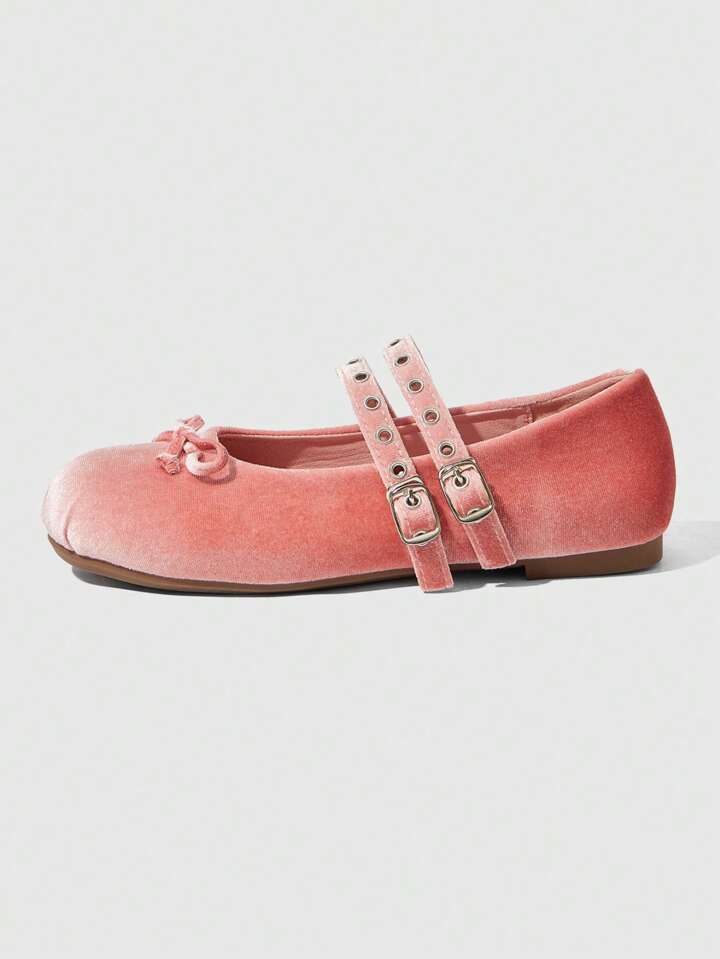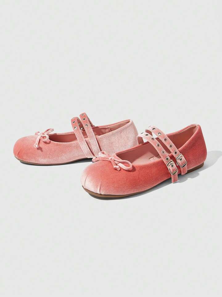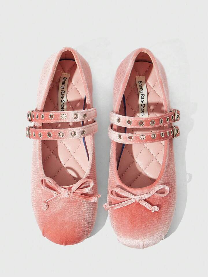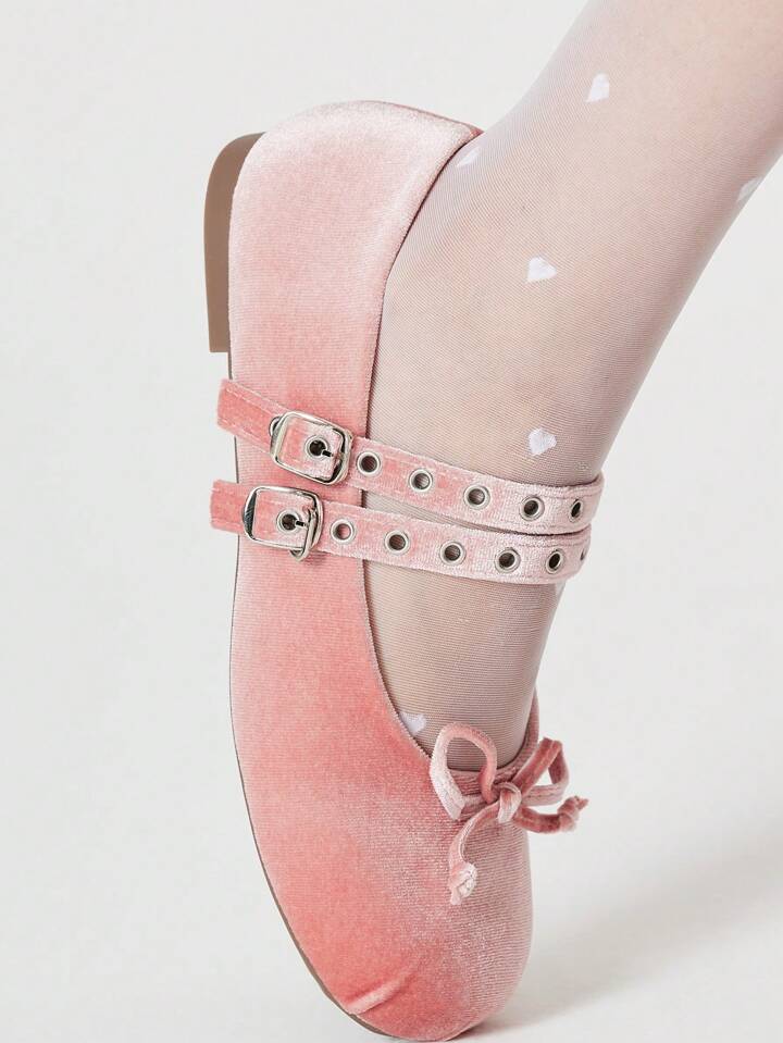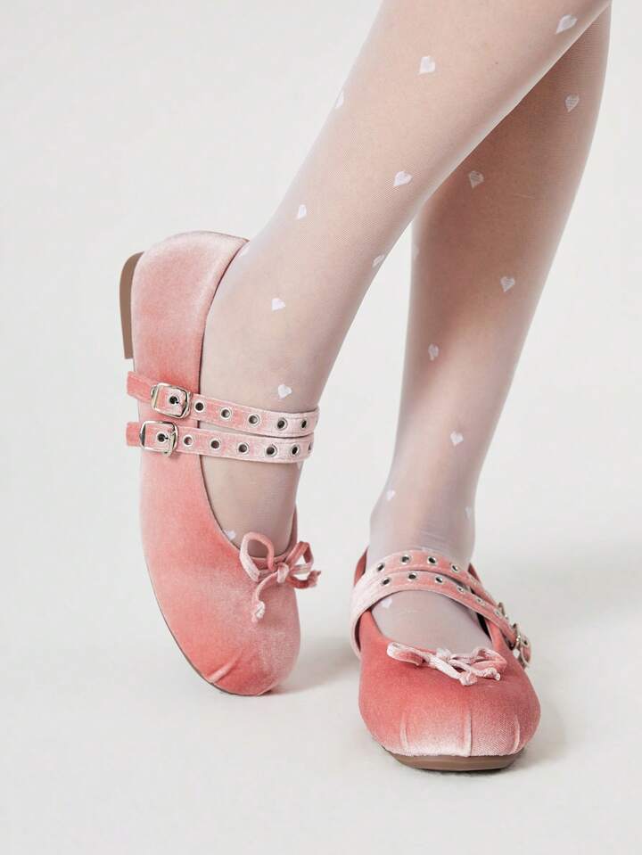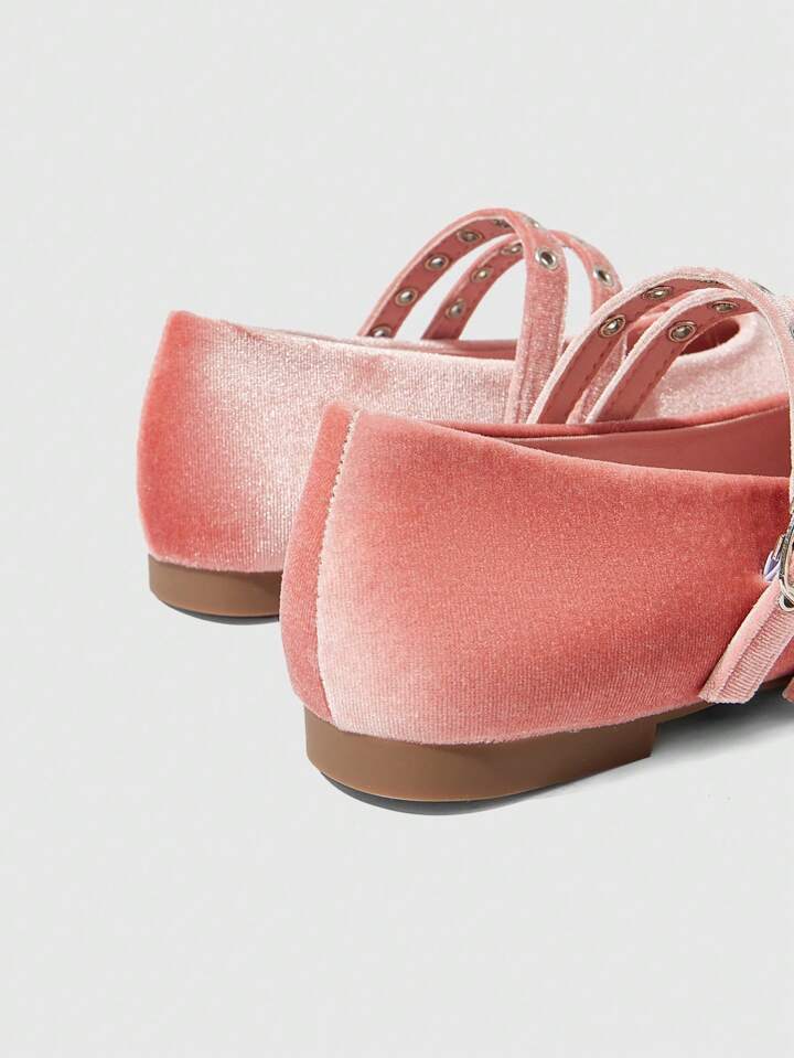 Kawaii Bailarinas rosa con correa de tobillo para mujer, con punta cerrada, suela suave, apropiadas para vestidos de fiesta, estilo punk gótico