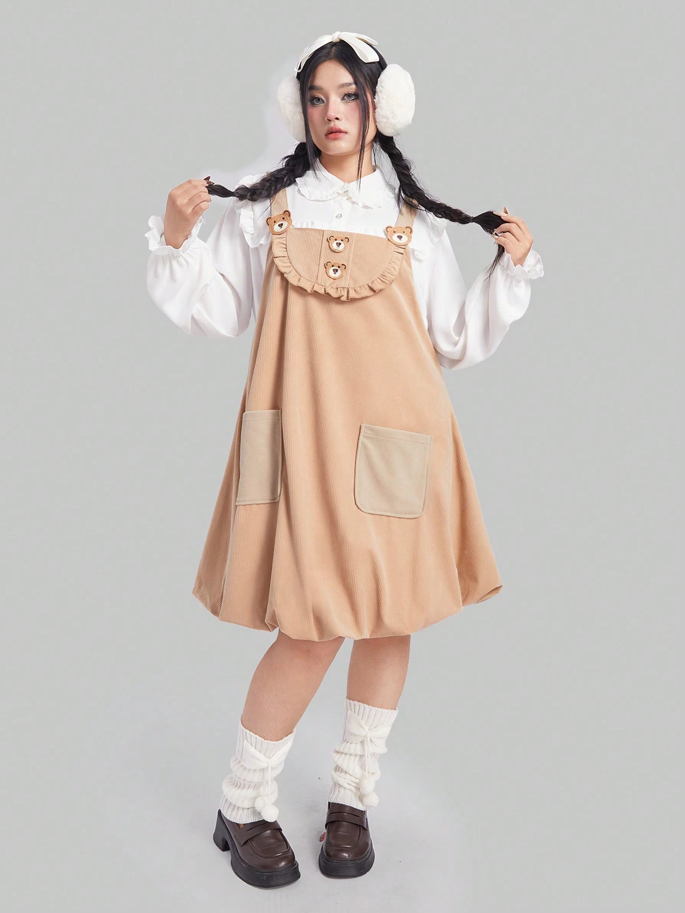 Kawaii Vestido Impreso Con Patrón De Oso Y Bolsillo Delantero De Talla Grande Para Mujer