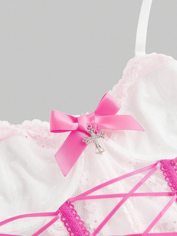 Kawaii Top de camisola con lazo y encaje cruzado de estilo punk para mujer