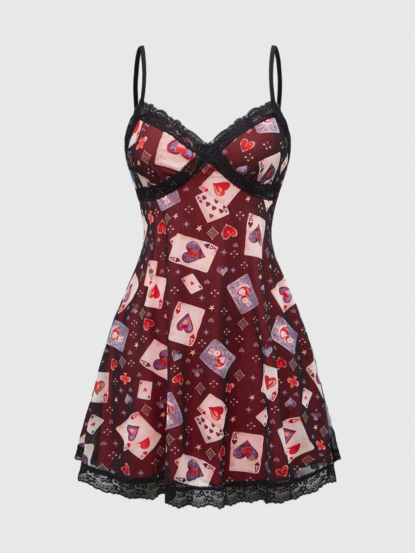 Kawaii Vestido casual tipo cami para mujer con estampado aleatorio