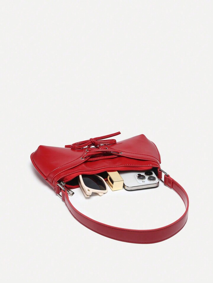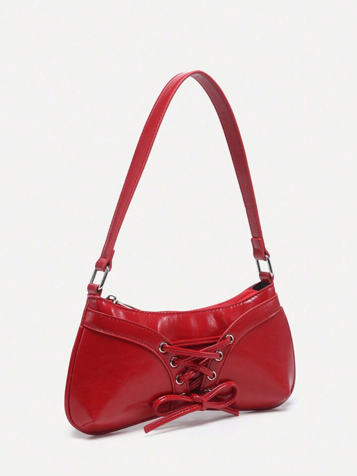 Kawaii Bolso cruzado con cadena y perlitas con lazo retro estilo ballet, paquete de cintura con acentos de encaje para el hombro/debajo del brazo para mujeres