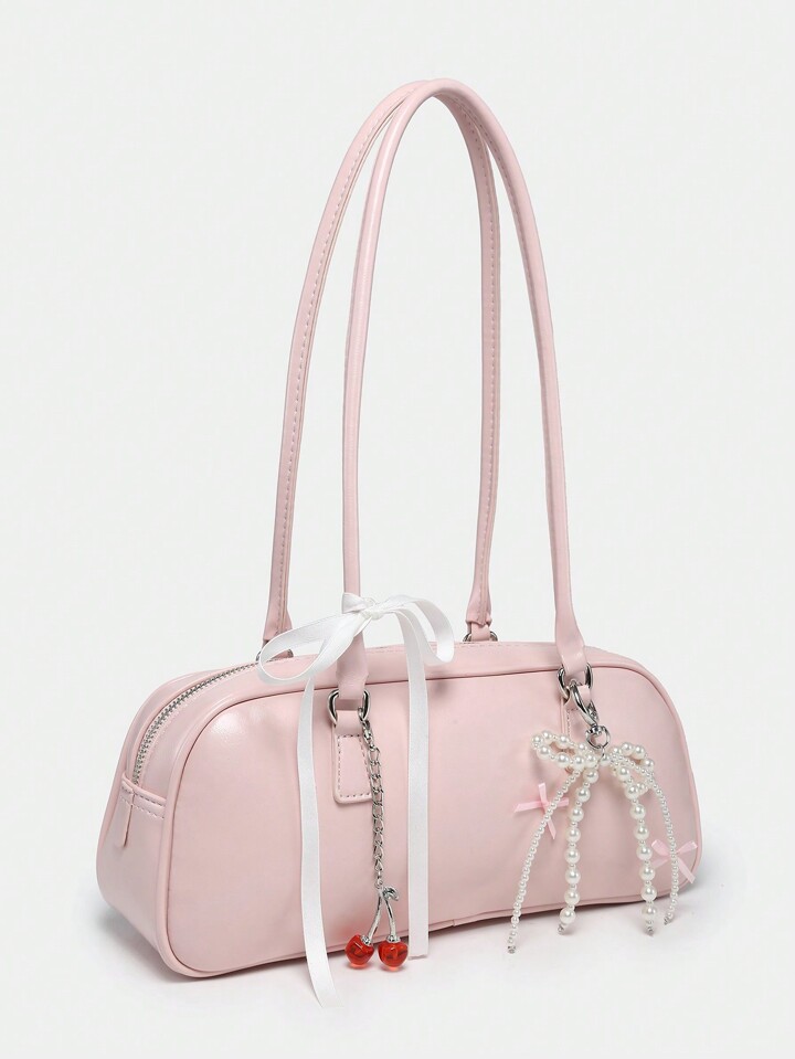 Kawaii Bolso de hombro de estilo retro y lindo para mujer con estampado a cuadros, lazo, decoraciones de cerezas y corazones