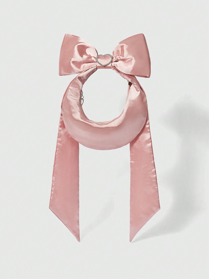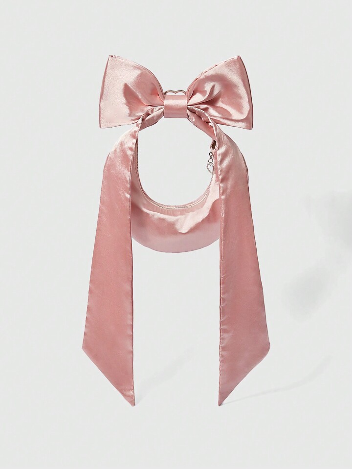 Kawaii Bolso de hombro de satén con decoración de lazo para mujer, ideal para fiestas y ocasiones