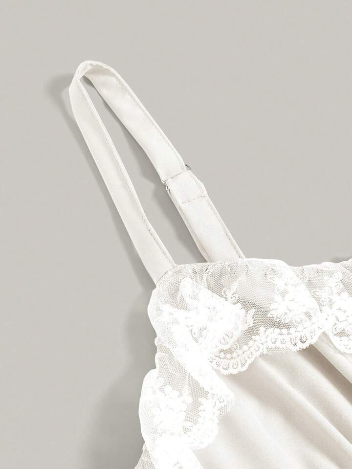 Kawaii Camiseta de tirantes de encaje con volantes y patchwork con decoración de lazo para mujer, para la escuela