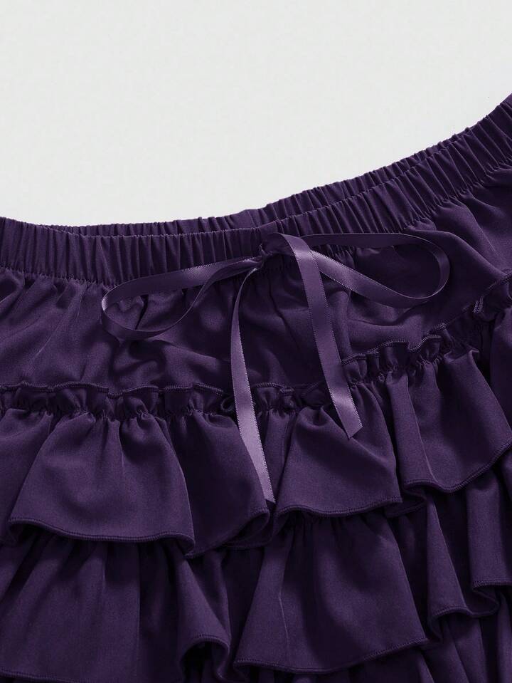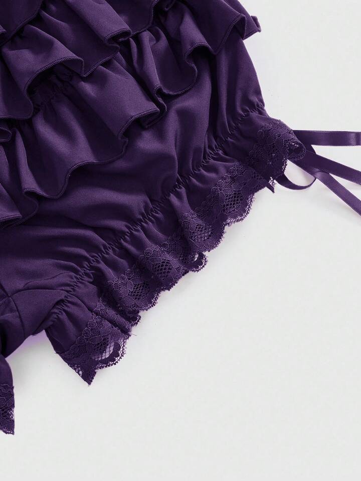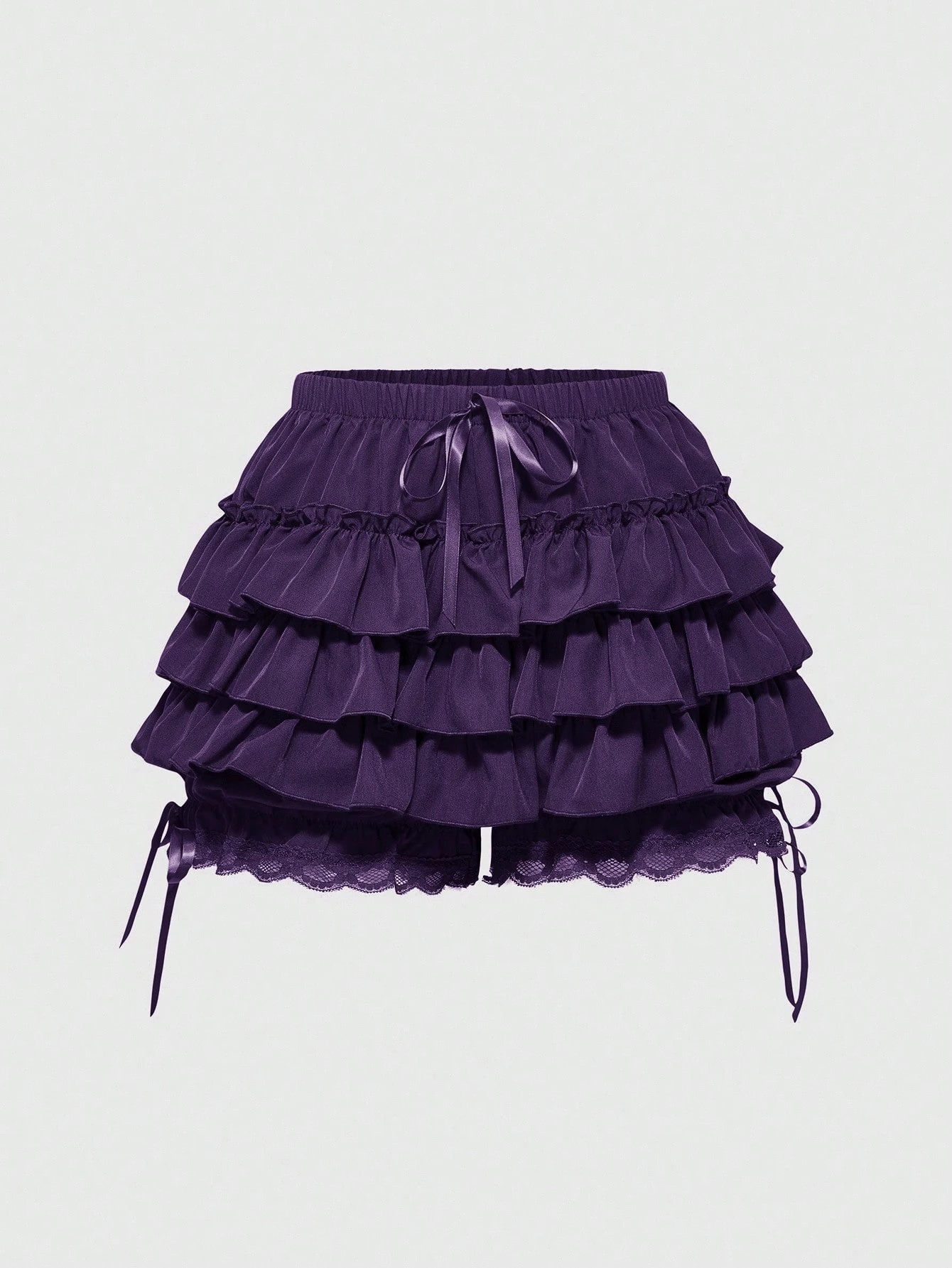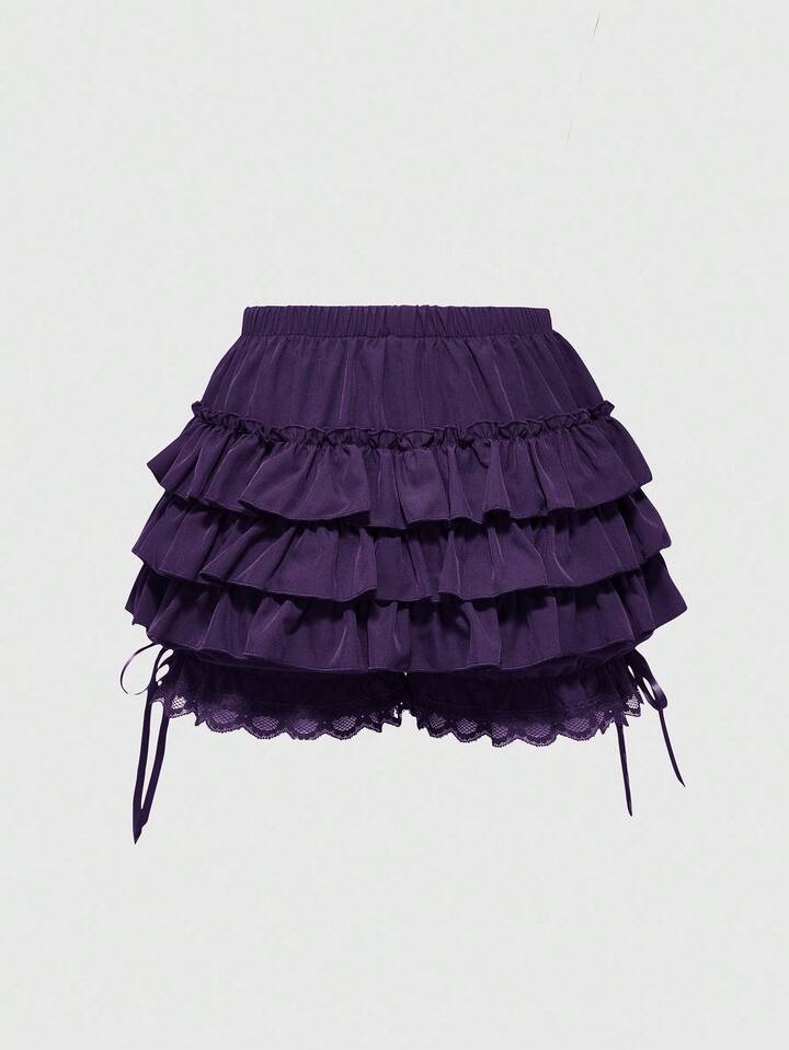 Kawaii Pantalones cortos de mujer de estilo gótico casual de verano con cintura con cordón, multicapa con volantes y encaje de contraste
