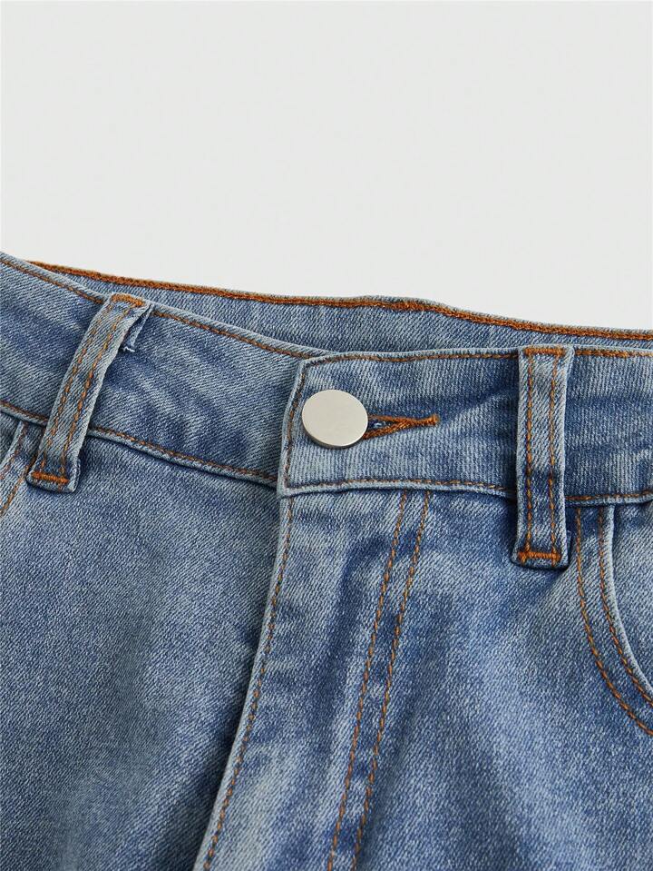 Kawaii Jeans de mezclilla acampanados con lazo de conejo difuso dulce y lindo para mujer