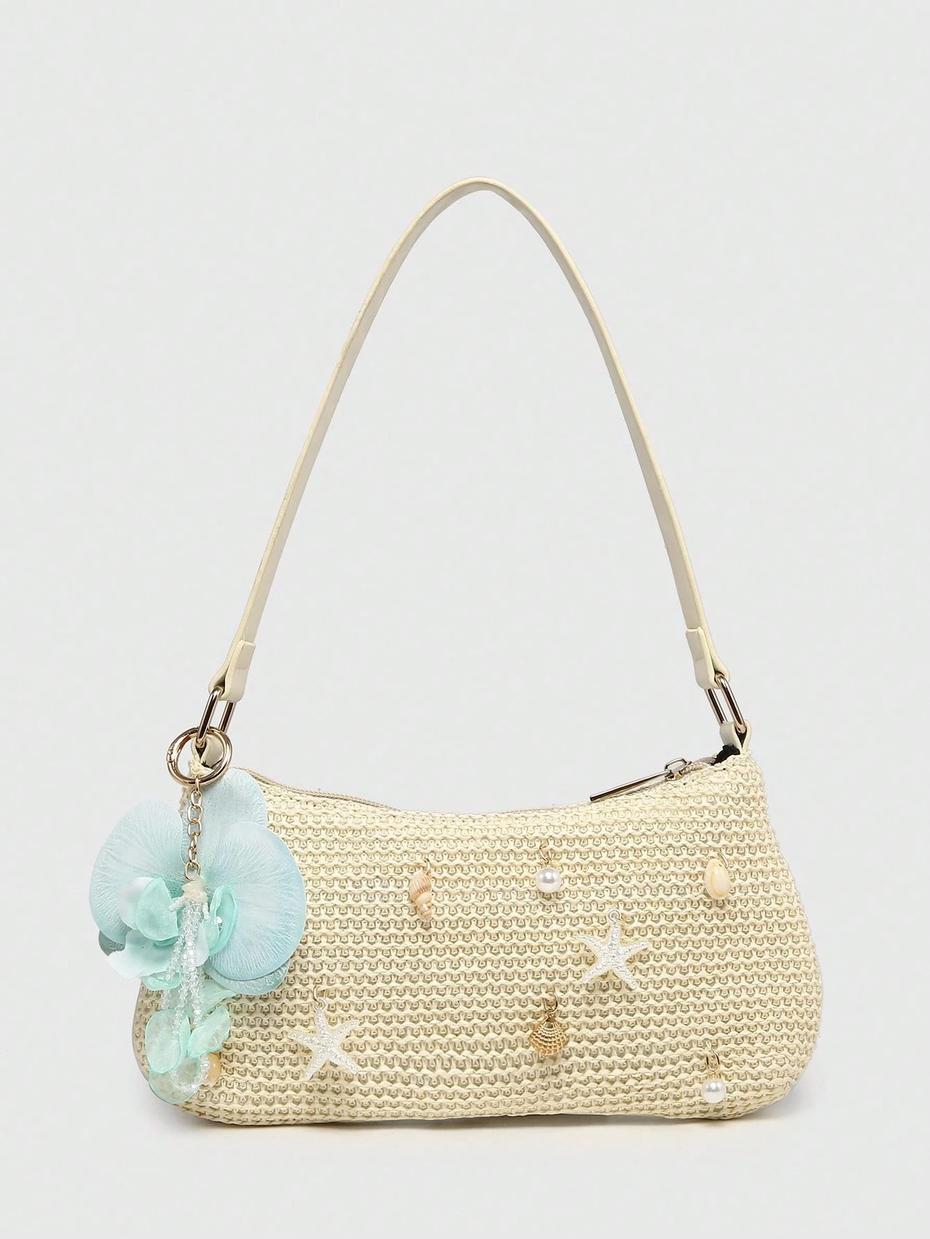 Kawaii Bolso de hombro con decoración de lazo de estilo ballet vintage, cadena, leopardo y perlas para mujer