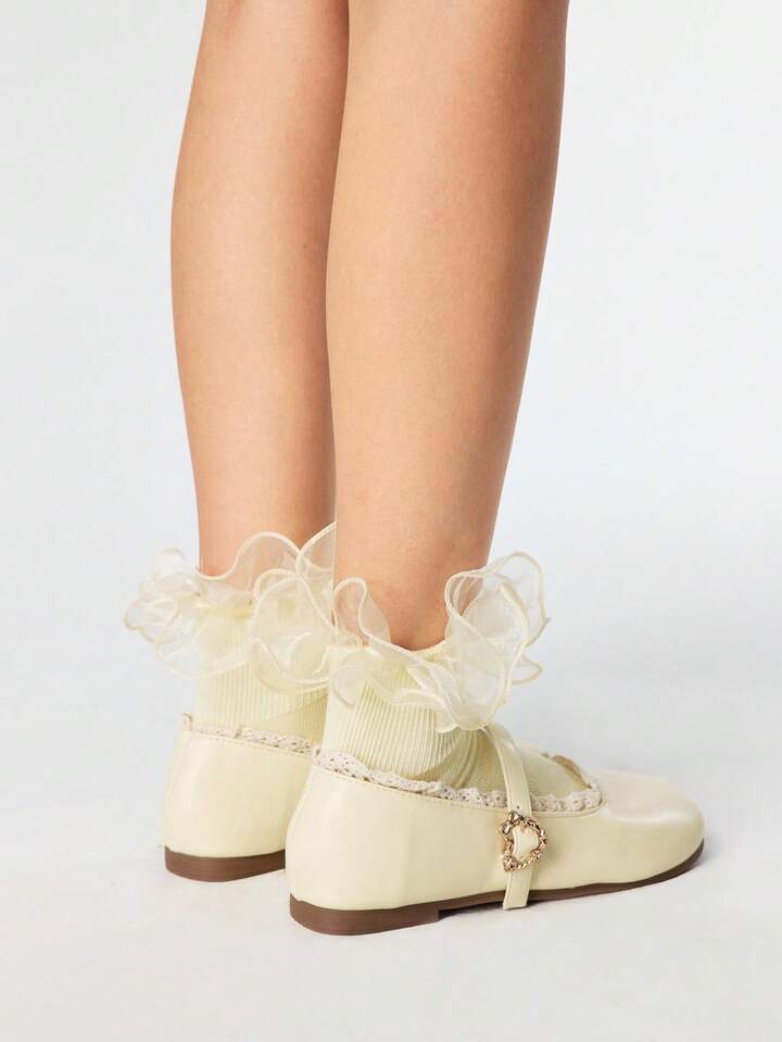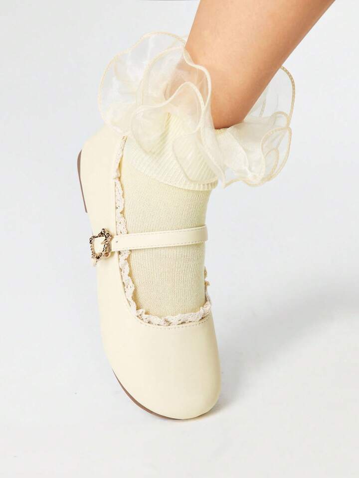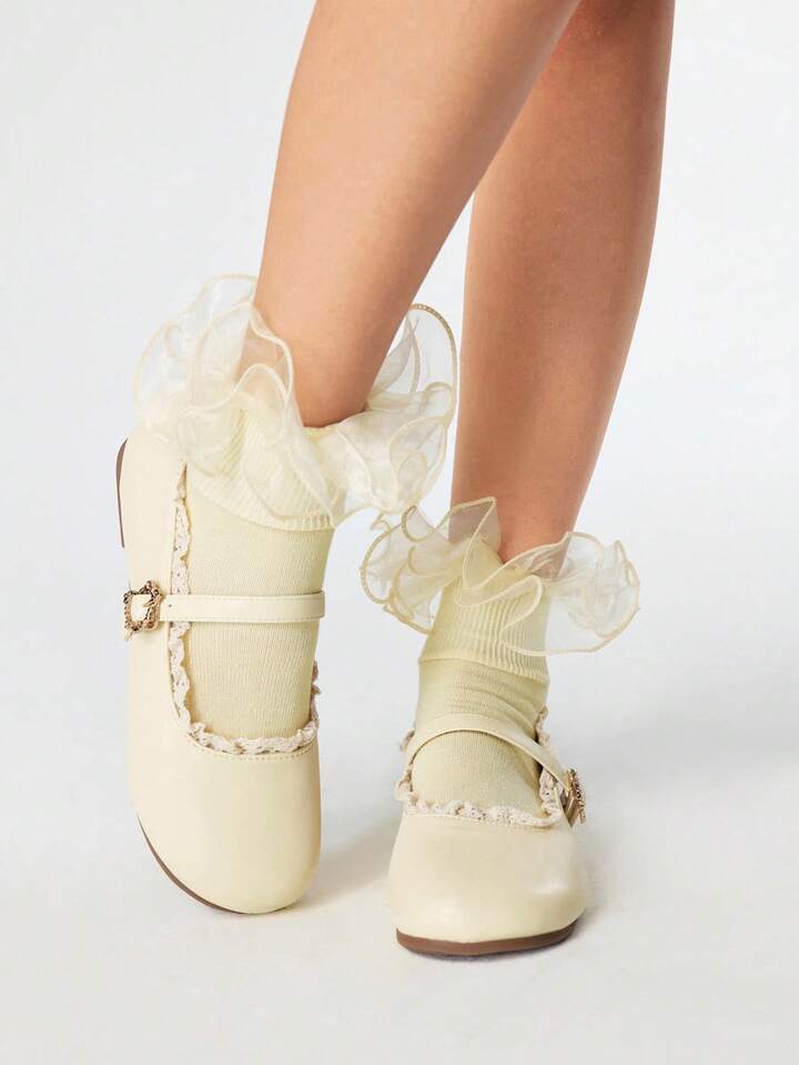Kawaii Zapatos de Mujer tipo Mary Jane en color amarillo, de punta cerrada, con correa y adorno de lazo con encaje, zapatos planos de estilo Lolita japonesa (JK)