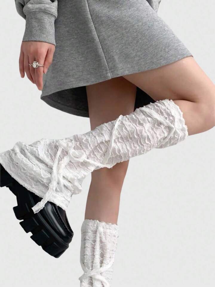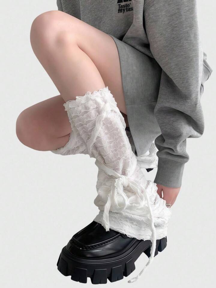 Calentadores de piernas de unicolor minimalista con tirantes de moño estilo Kawaii Y2K para mujeres, adecuados para estilismo, cosplay de personajes de anime de segunda generación, accesorios JK