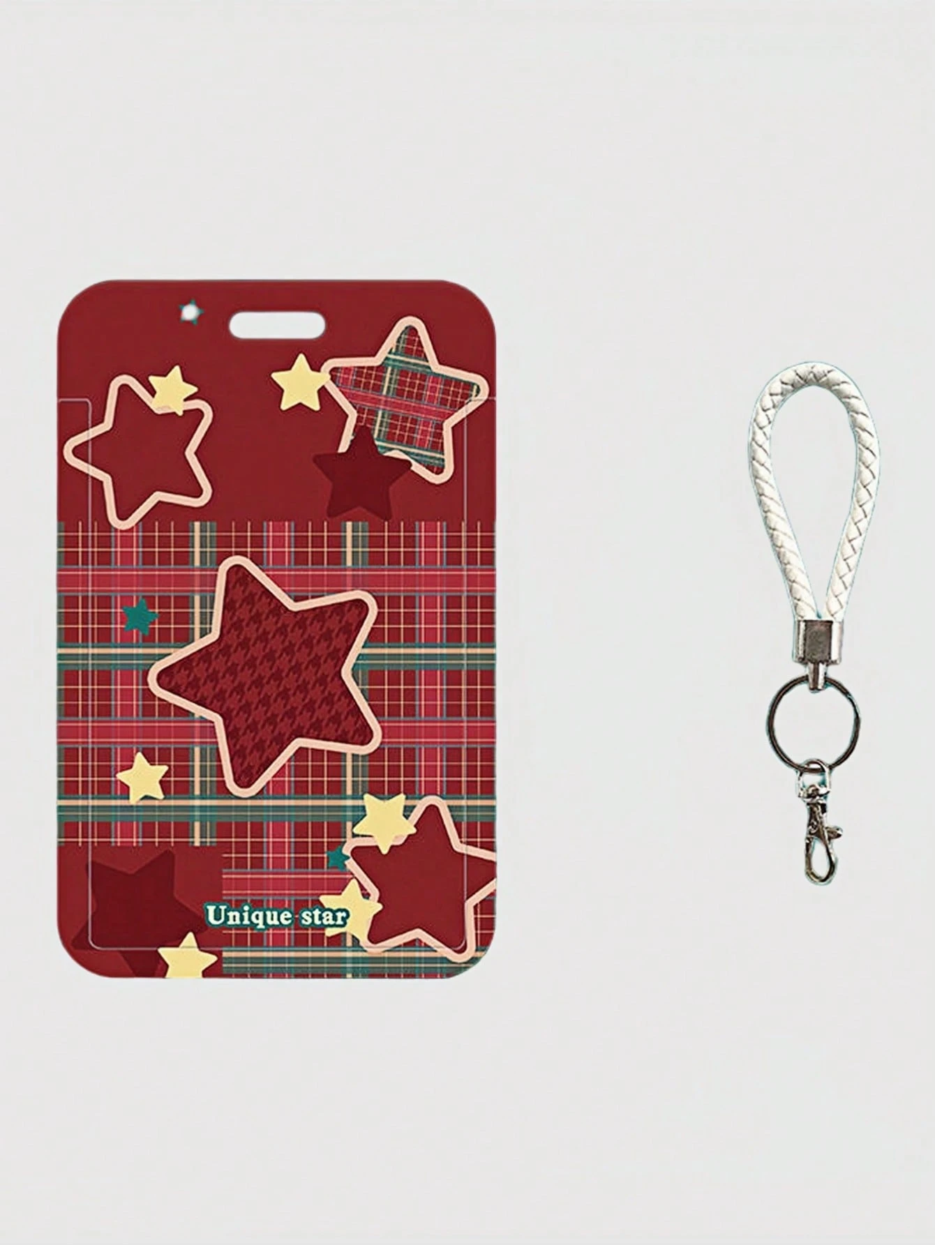 Kawaii Funda para tarjetas con patrón retro de cuadros y estrellas estilo Y2K, para tarjeta de campus/comedor, tarjeta de autobús, tarjeta de acceso, portador de tarjeta de identificación, mercancía de fans, bolsa colgante para tarjeta de ídolo K-pop