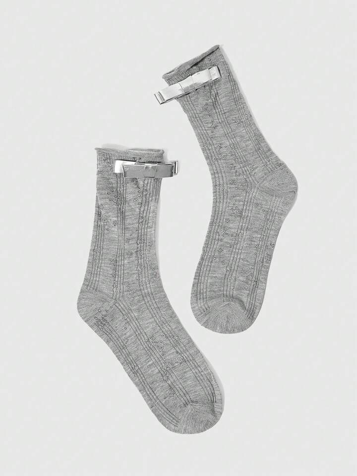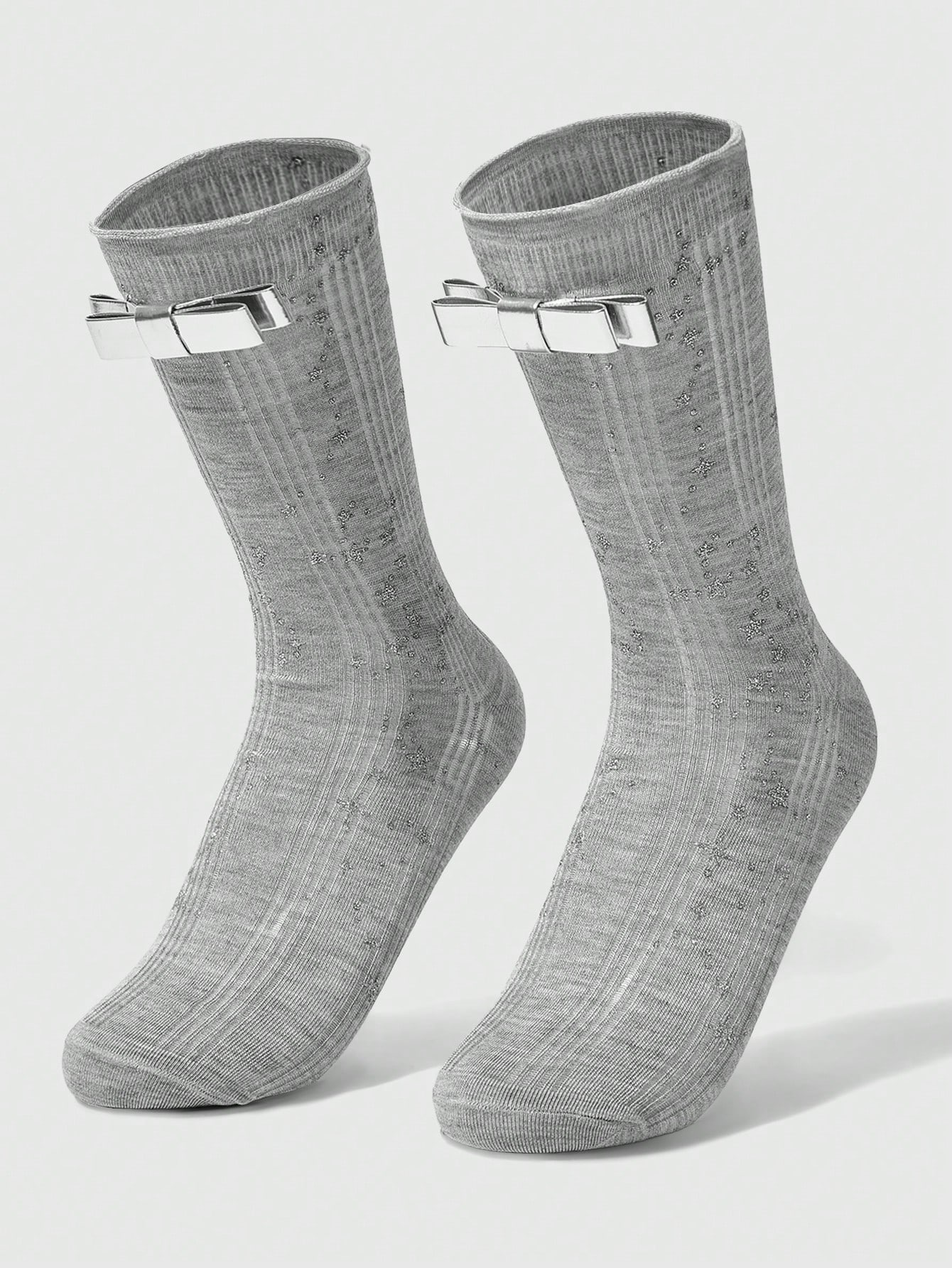 Kawaii Calcetines hasta el tobillo con lazo de ballet, estampado de constelaciones y detalles de malla con rayas verticales, en el estilo Y2K