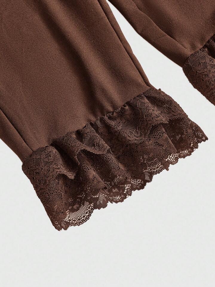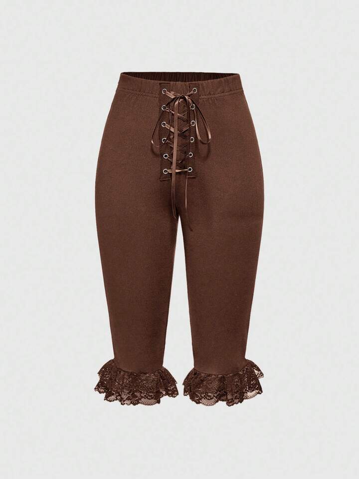 Kawaii Pantalones capri con parches de encaje y cordones, estilo Y2K