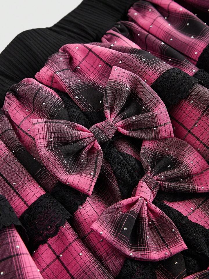 Kawaii Minifalda con volantes con lazo de strass con estilo Y2K para mujeres