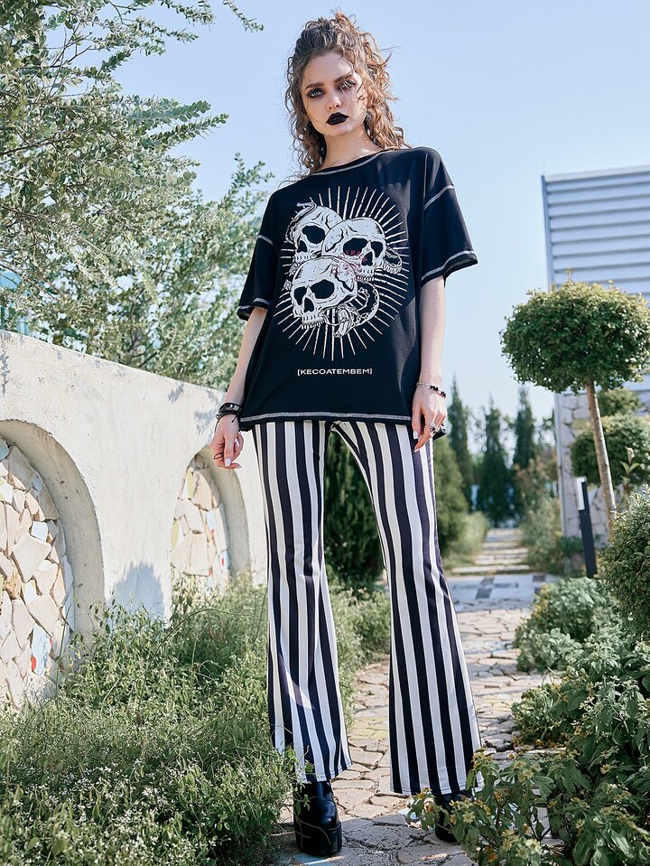 Kecoatembem Camiseta de hombros caídos con estampado de cráneo & de serpiente