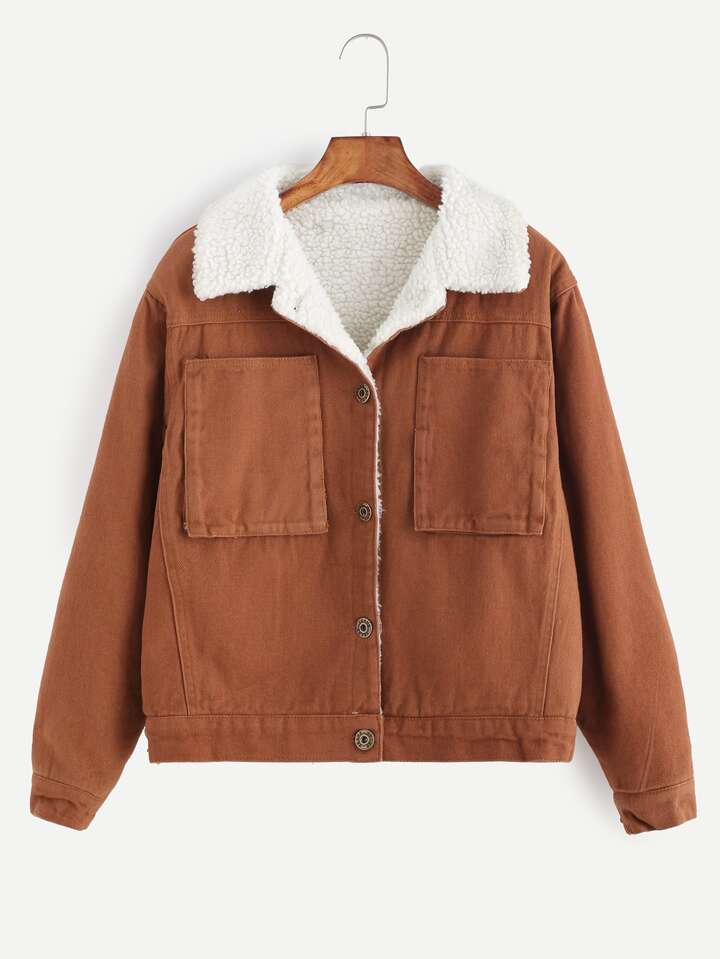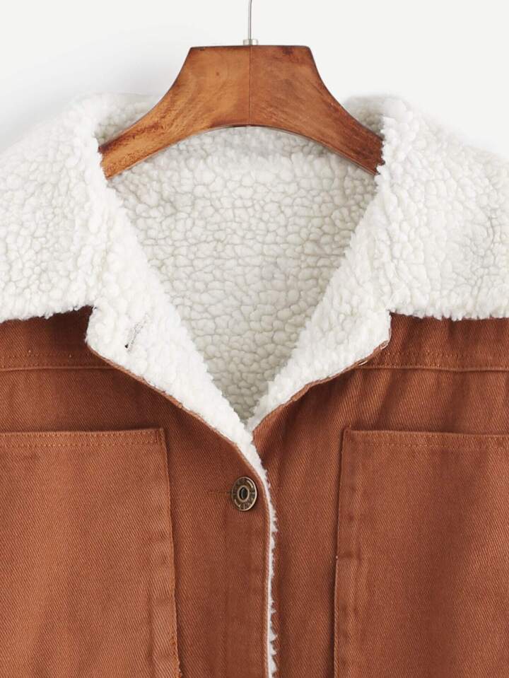 Chaqueta con un botonadura con forro de sherpa - kaki