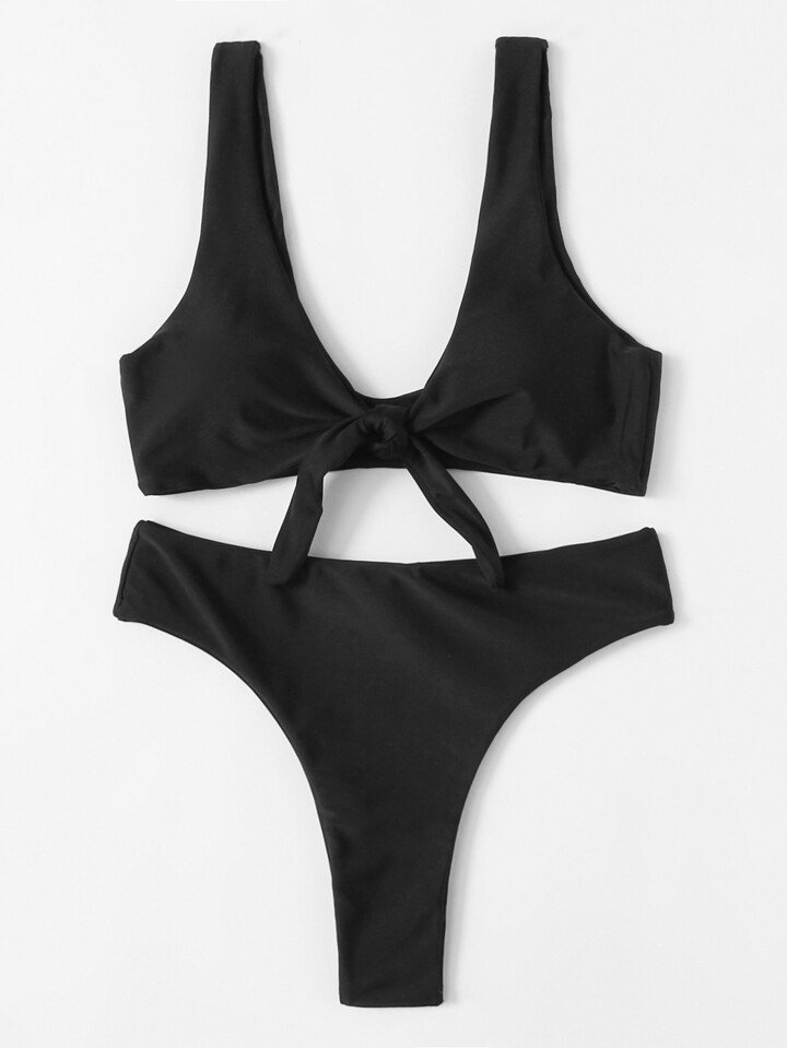 Set de bikini de cuello profundo con nudo delantero